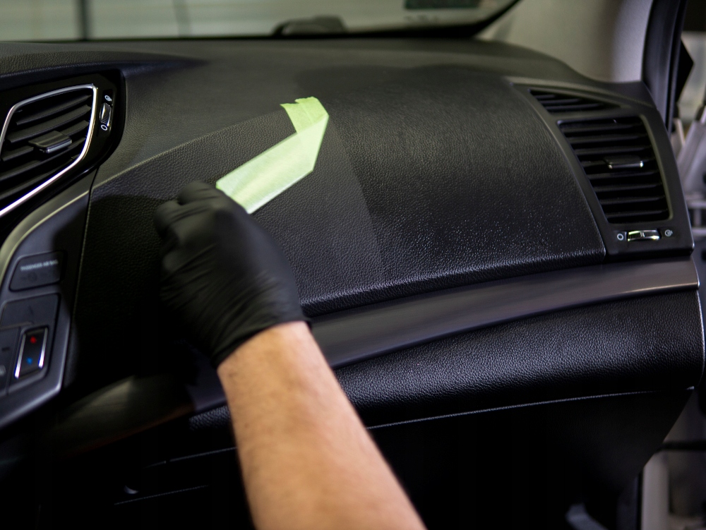 - Тщательно нанесите повязку на чистые, сухие пластмассовые и резиновые элементы. Вы можете сделать это напрямую - с помощью распылителя, входящего в комплект поставки, или косвенно, используя специальный аппликатор для автомобильного пластика.