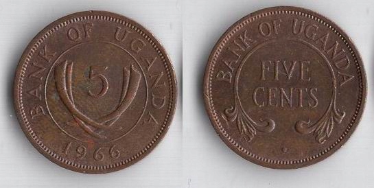 Уганда 1966 г. 5 цент