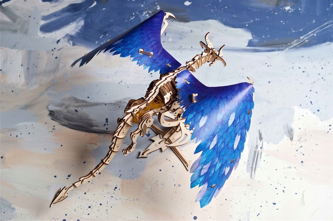Это уникальная особенность вашего Ugears Dragon: кости крыльев сделаны из дерева, а остальные представляют собой красиво оформленные перья, вырезанные из бумаги. Более мягкий и гибкий материал делает полет очень реалистичным и оставляет простор для ваших собственных идей.