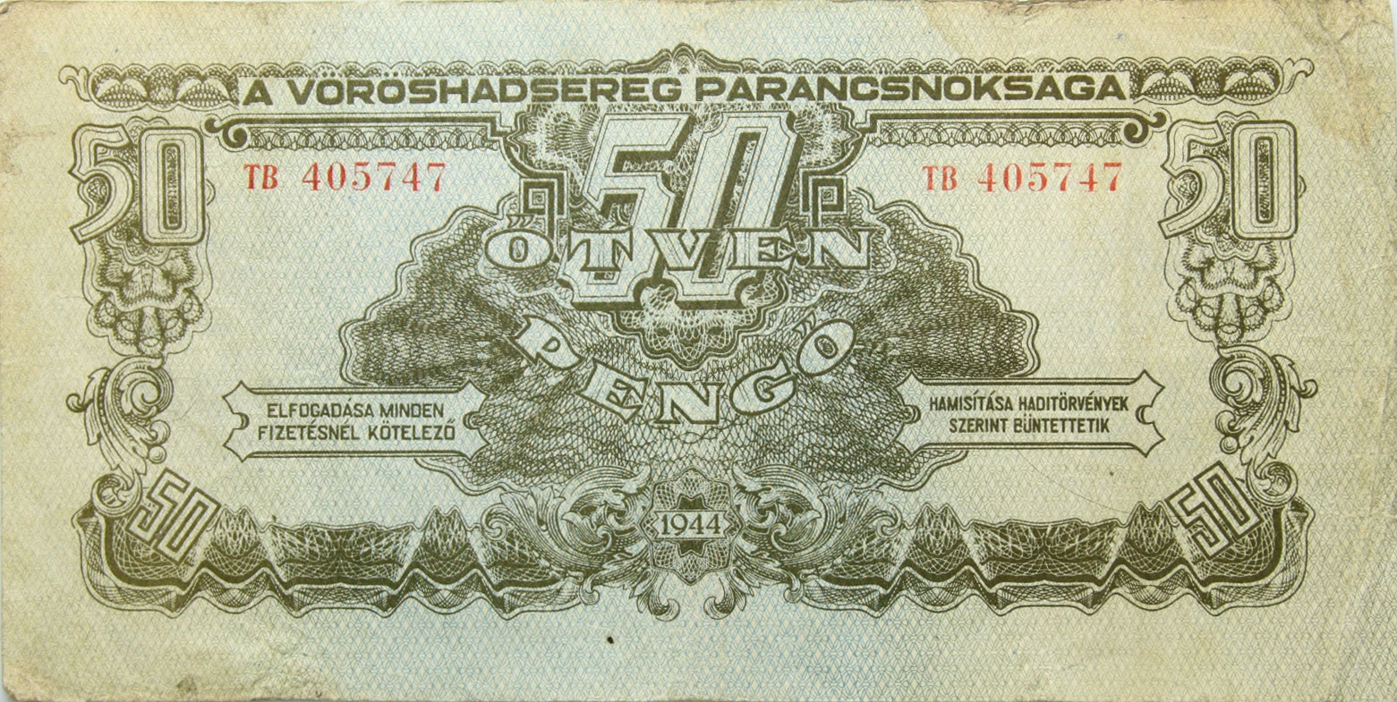 Угорщина - БАНКНОТА - 50 Pengo 1944 - РОСІЙСЬКА РАДЯНСЬКА ОКУПАЦІЯ