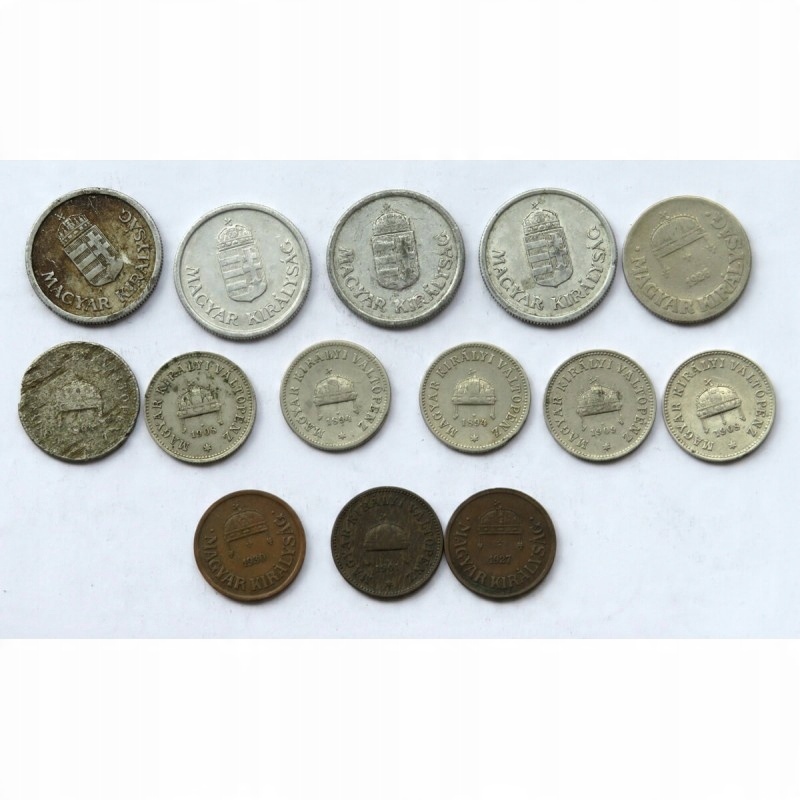 Венгрия, монеты с 1893-1930, набор из 14 штук