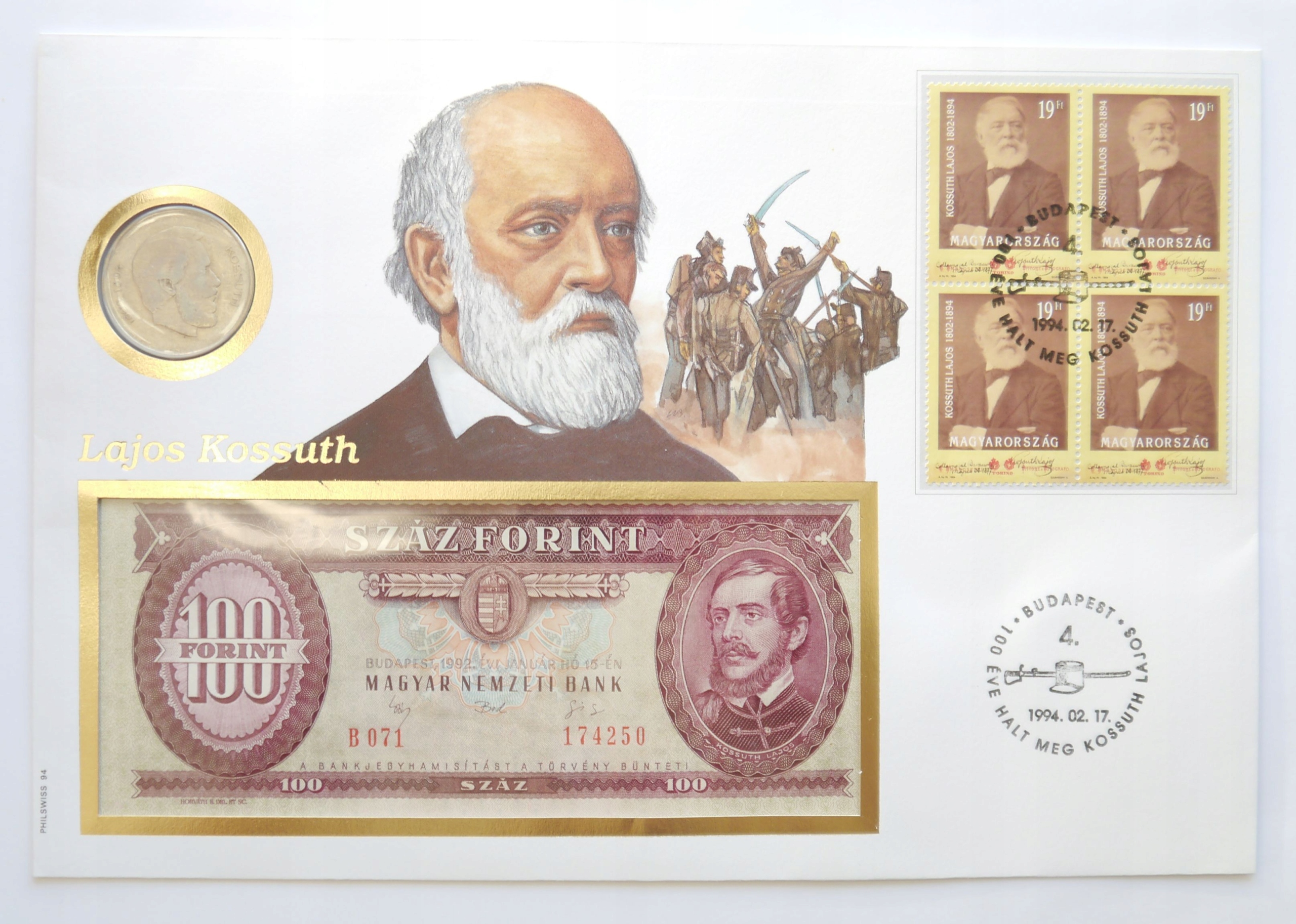 ВЕНГРИЯ 100 ФОРИНТ 1992 ГОДА + 5 ФОРИНТ 1947 ГОДА НУМИЗМАТИЧЕСКОЕ ПИСЬМО ОТ 1 ЗЛОТОГО