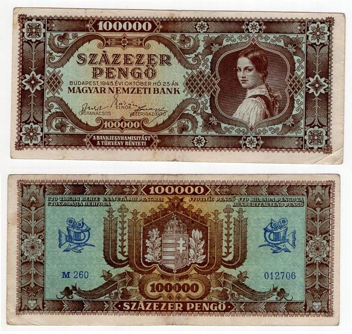 ВЕНГРИЯ 1945 100 000 ПЕНГО