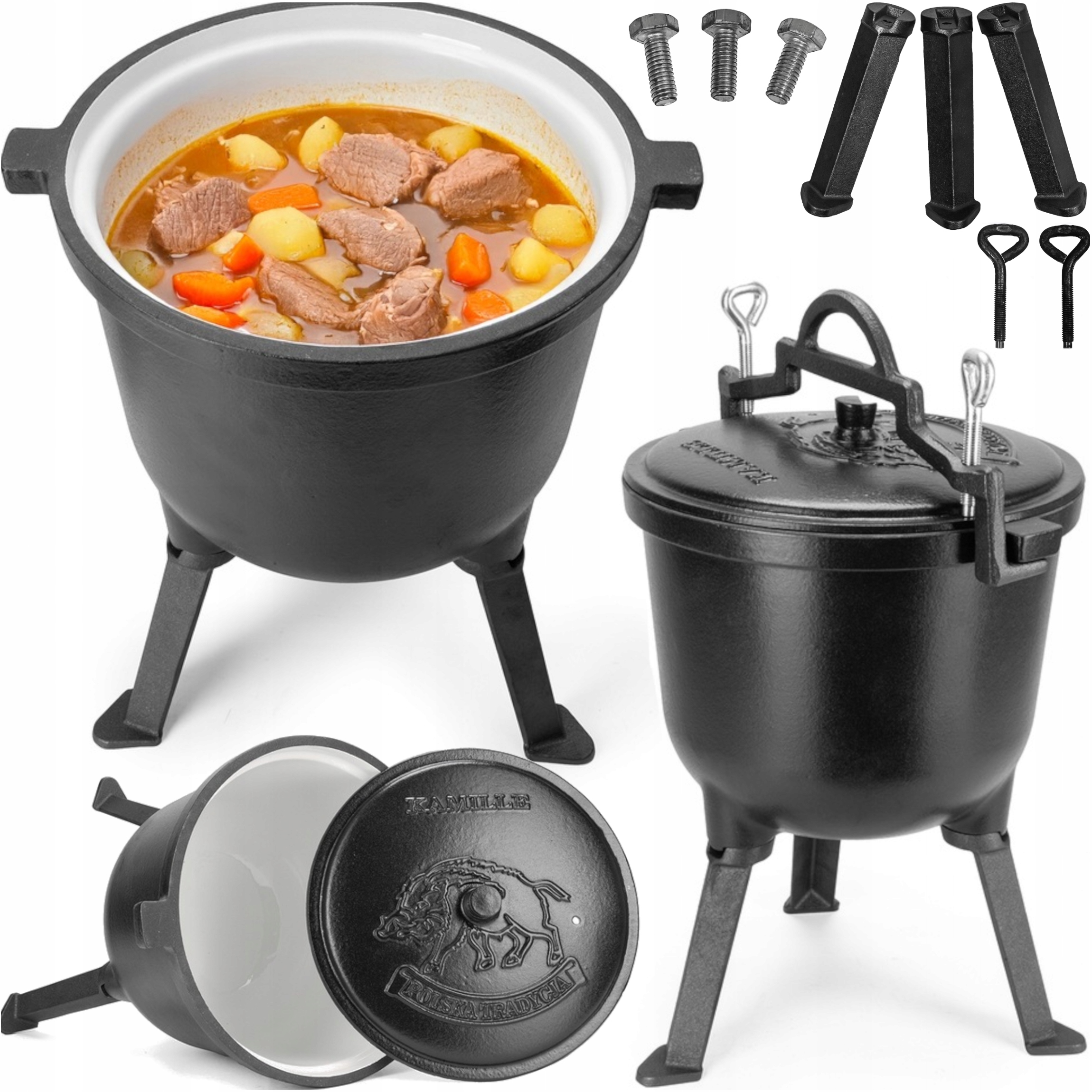 Чугунный котел с емкостью 8 литров является идеальным блюдом для приготовления различных ароматических блюд на открытом воздухе. Его мощность делает его отличным подходящим для семейных ужинов и встреч в меньшей группе.