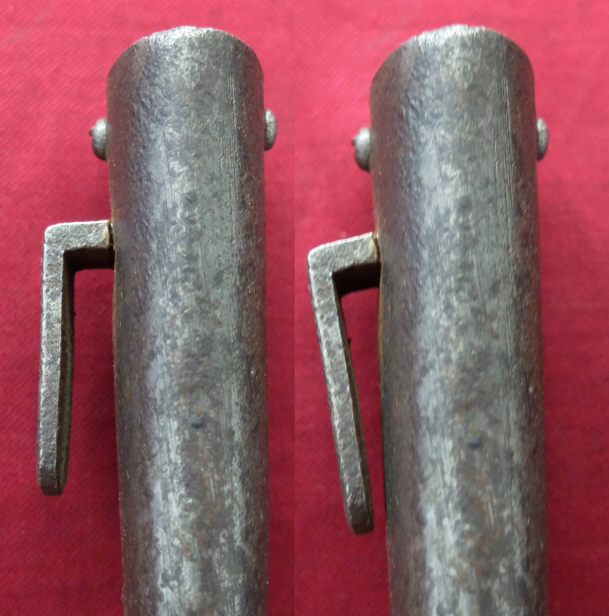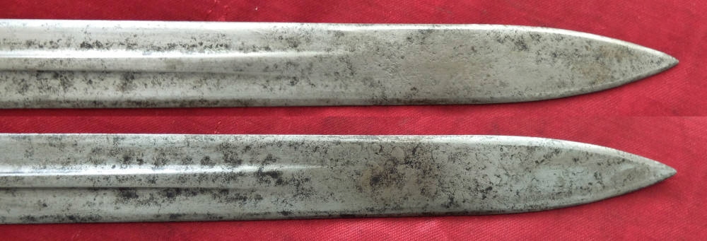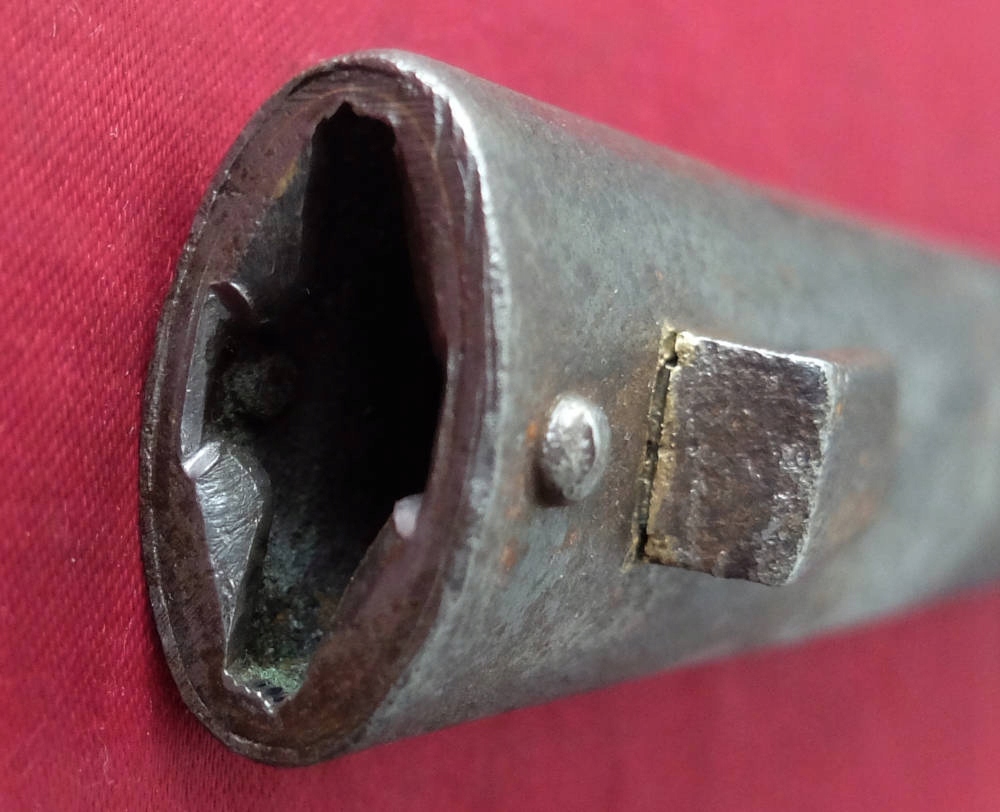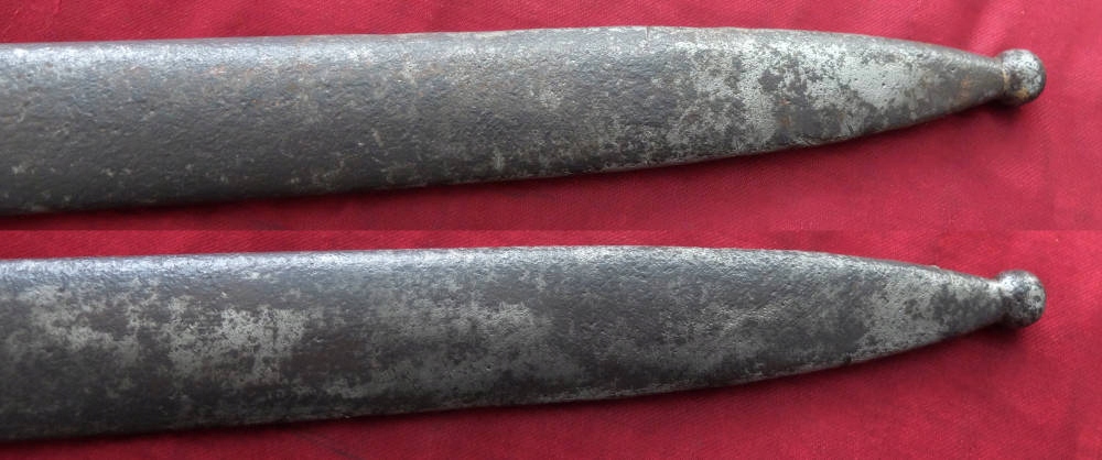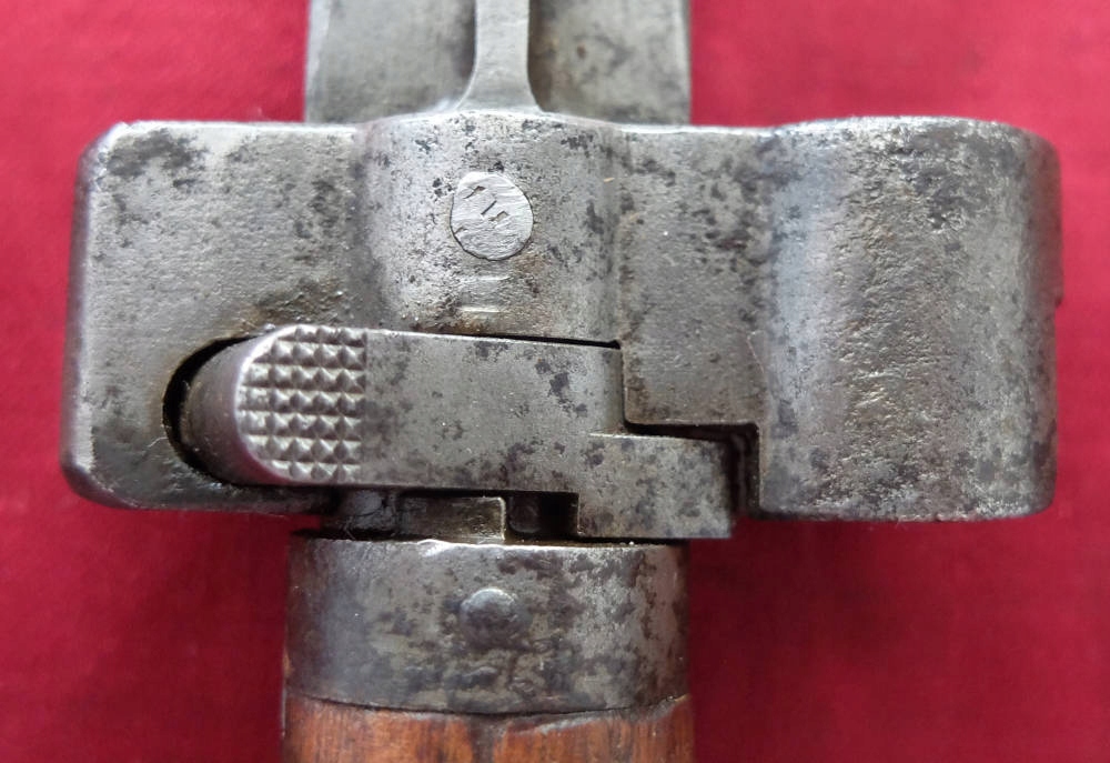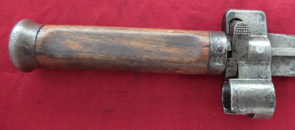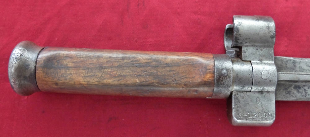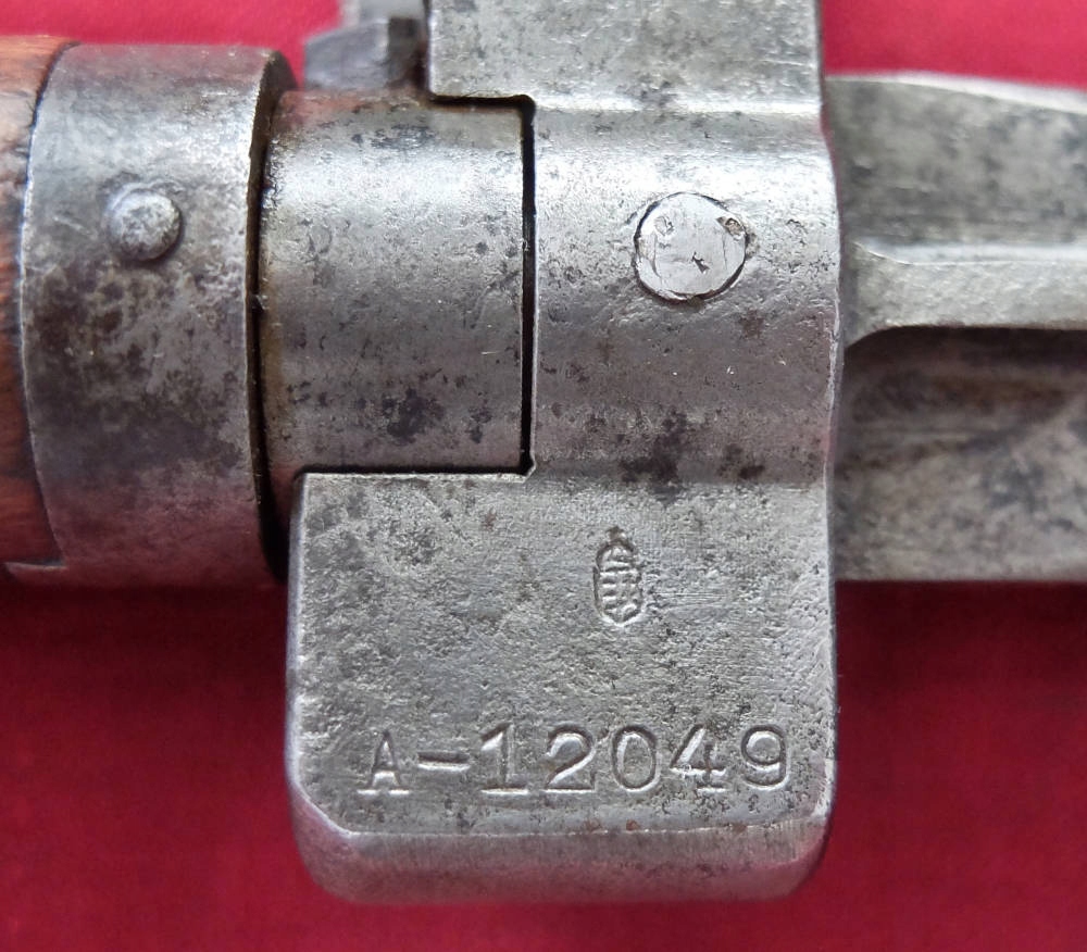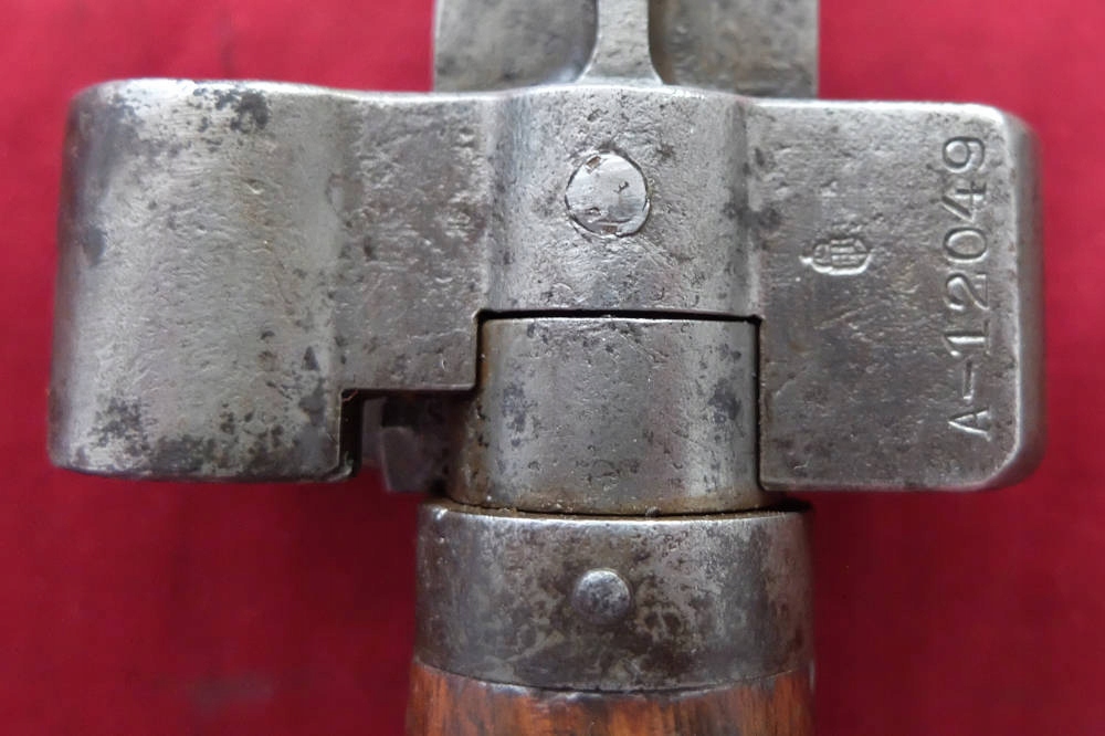Предмет на фотографиях, в хорошей сохранности. Клинок не заточен, заточен в заводских условиях, имеет небольшие ямки и тонкий след от направляющей ножен. Ручка деревянная, оригинальная. Байонетный замок рабочий. На перекладине выбита маркировка: герб Венгрии и номер A-12049. Перекладина слегка расшатана.