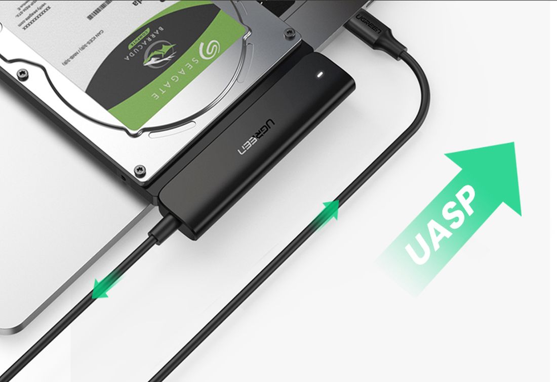 Адаптер Ugreen с разъемом USB Type C 3.1 Gen 2 для подключения HDD и SSD накопителей (только 2,5 дюйма) с интерфейсом SATA к компьютеру. Для использования этого адаптера не требуются драйверы, он работает по принципу Plug&Play.
