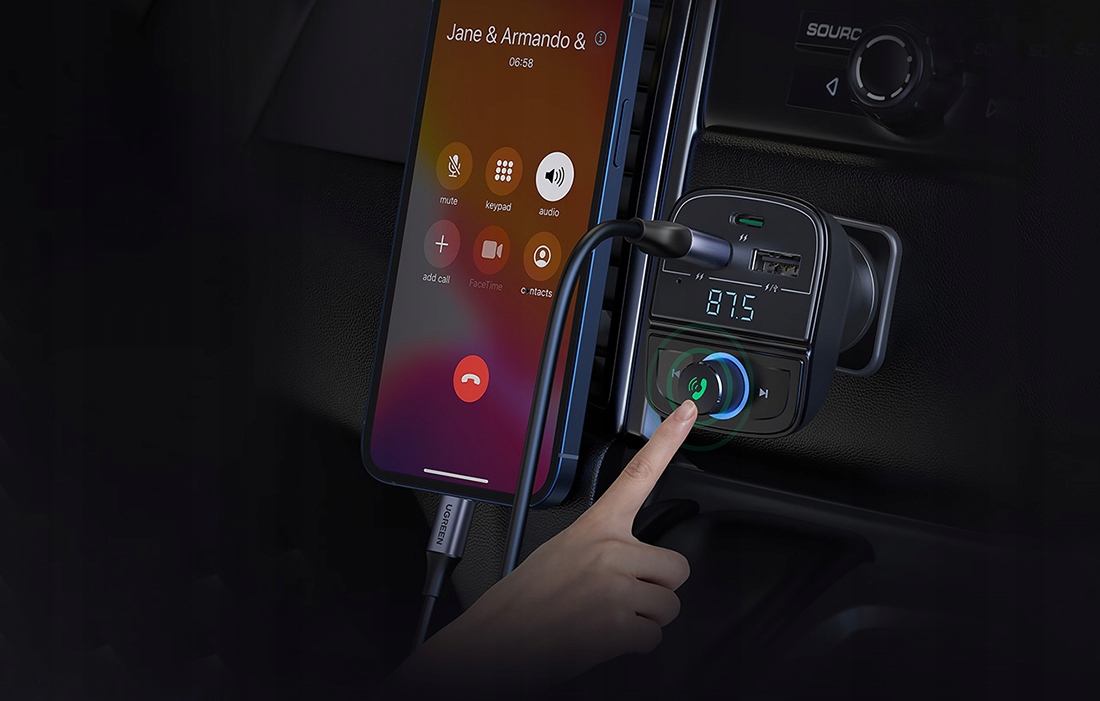FM-передатчик Bluetooth 5.0 с автомобильным зарядным устройством UGREEN CD229