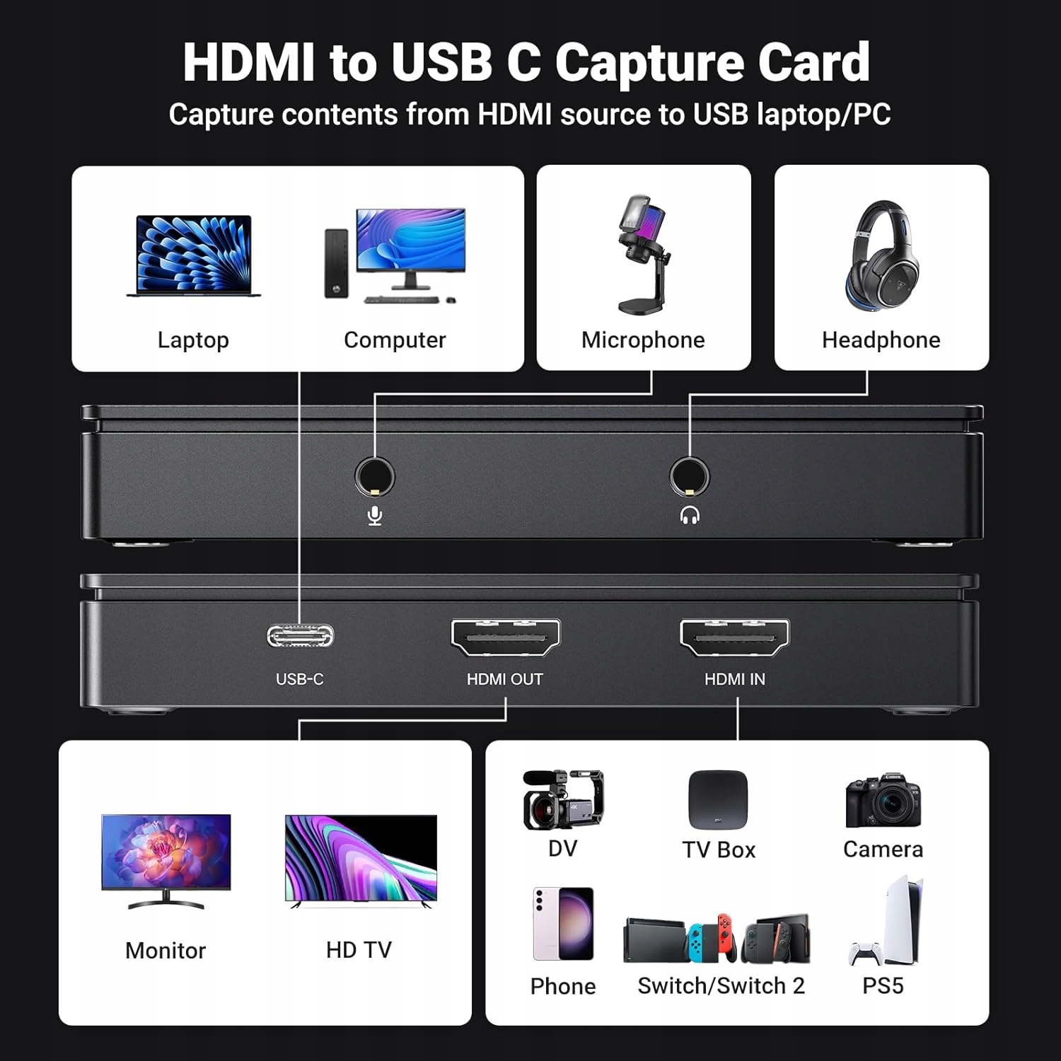 UGREEN Grabber Видео 4K HDMI USB C 1080P 60 кадров в секунду Прямая трансляция игр