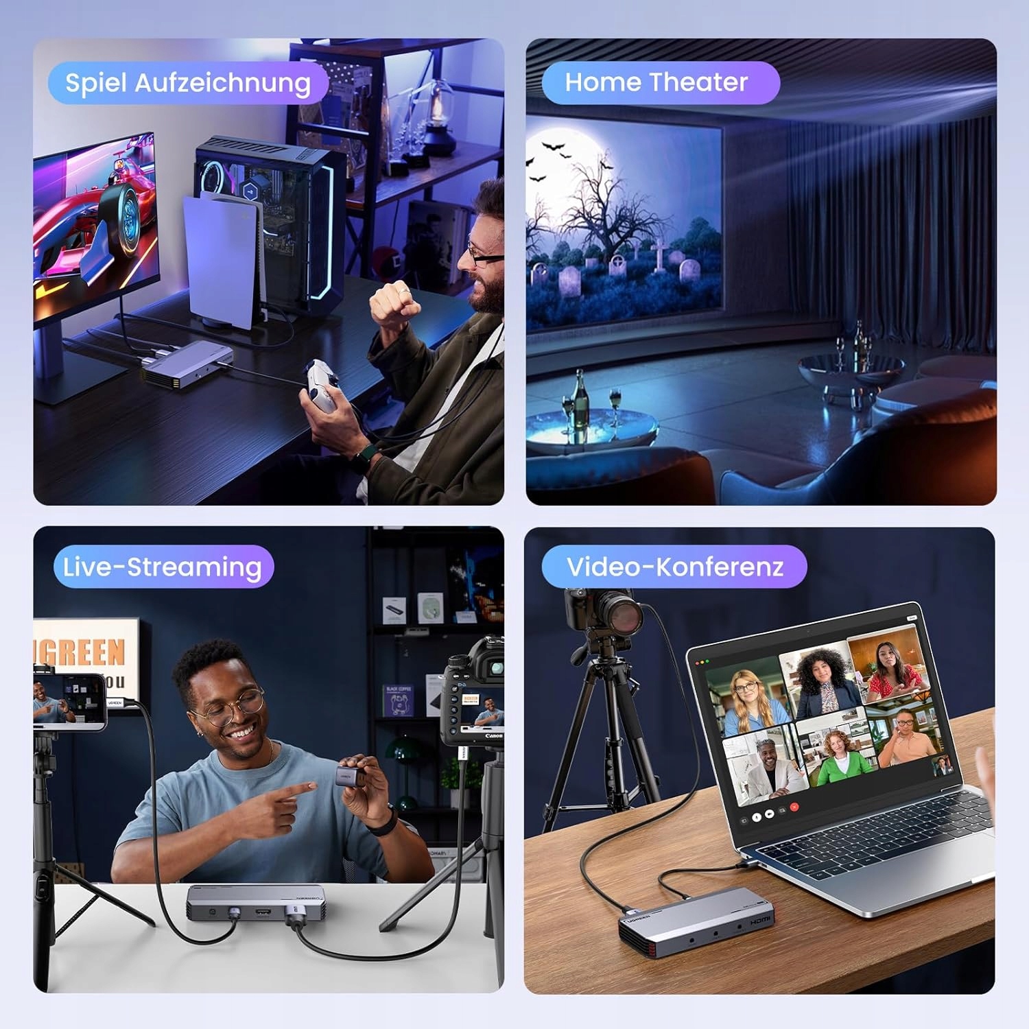 📦 Продукт Карта видеозахвата UGREEN, карта захвата HDMI, карта захвата с кольцевым выходом USB 3.0 4K HDMI, 4K60 Гц / 2K144 Гц для потоковой передачи, работает с PS5/Switch/Switch2/Camera/PC