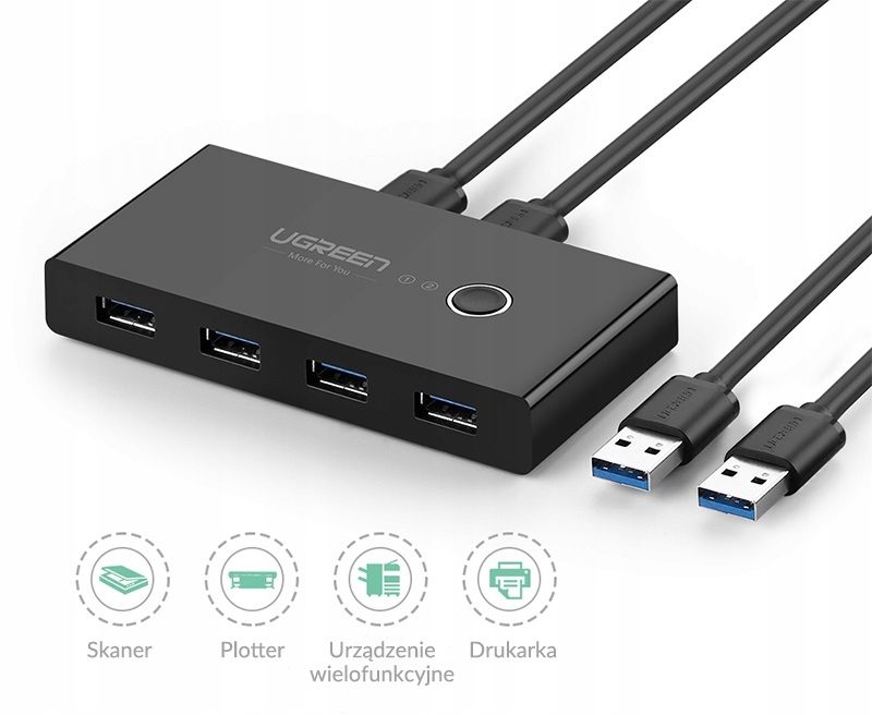 Интеллектуальный USB-переключатель от Ugreen. Он имеет 4 входа USB 2.0 и позволяет подключать два разных устройства. HUB работает таким образом, что разделяет доступ к четырем портам USB между двумя компьютерами. Однако только один из них может иметь к ним доступ одновременно. Чтобы вторая машина могла их использовать, необходимо переключить переключатель на второе устройство.