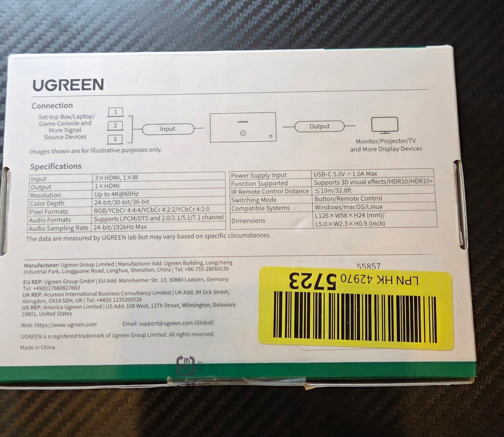 UGREEN SWITCH SPLITTER SWITCH HDMI 4K 3IN1