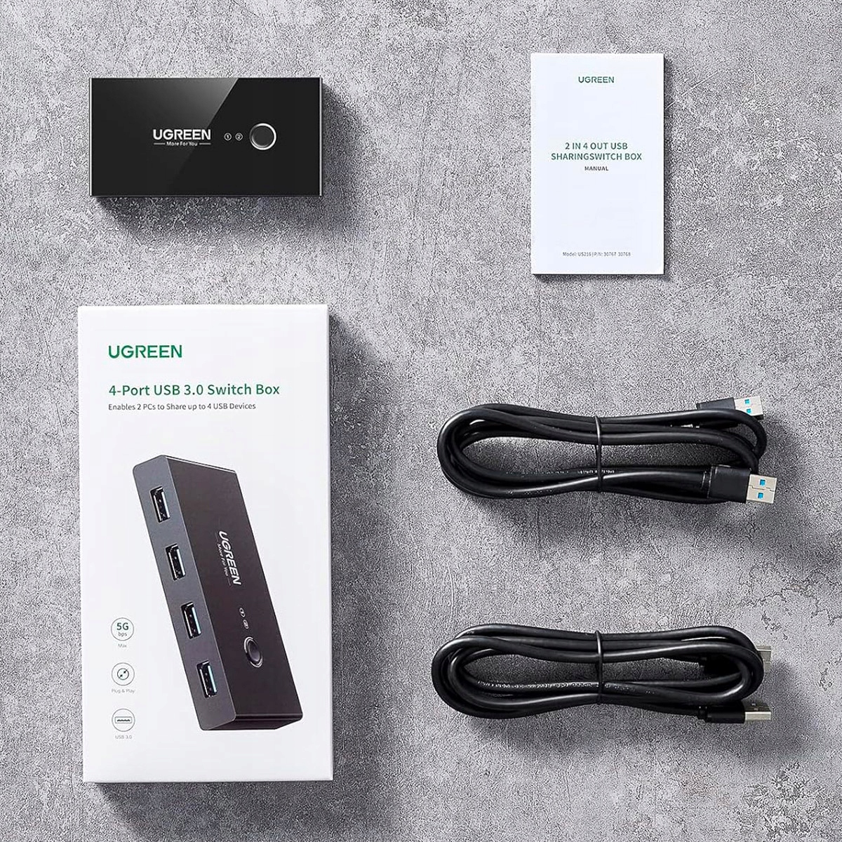 Коробка переключателей Ugreen Переключатель-концентратор, 4 USB-разветвителя USB 3.2 Gen 1 для двух компьютеров, черный (US216 30768)