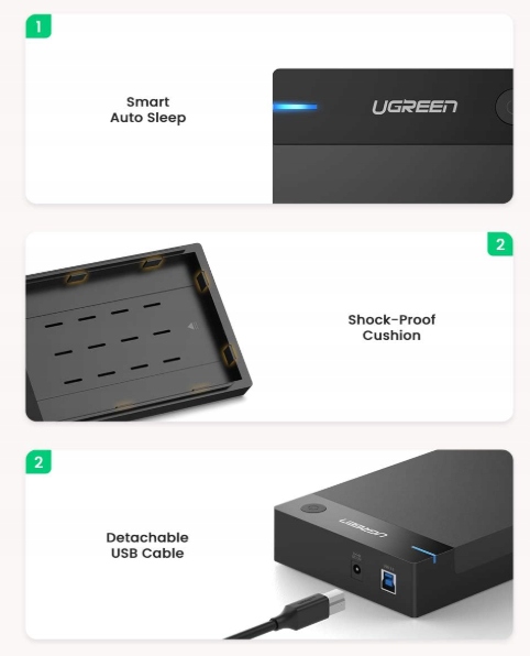 Корпус UGREEN USB 3.0–3,5 дюйма SATA — это надежное и функциональное решение, позволяющее легко подключать 3,5-дюймовые и 2,5-дюймовые жесткие диски с интерфейсом SATA к компьютерам, ноутбукам или консолям. Благодаря поддержке протокола UASP и питанию 12В обеспечивает быструю передачу данных и стабильную работу.