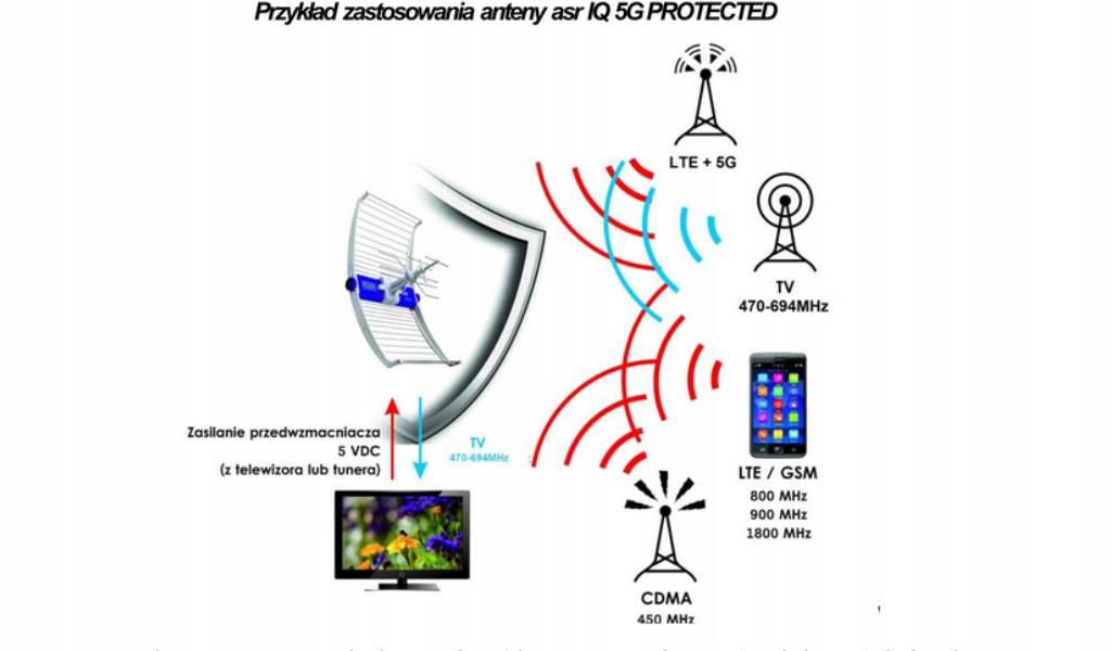 Современная широкополосная антенна, посвященная приему цифрового телевидения DVB-T/ T2. Защищенная версия 5G имеет реализованную очень обширную фильтрацию полосы пропускания, которая устраняет тревожные сигналы за пределами полосы (5G, LTE 800 и 700, GSM 1800 и т. Д.). Эти сигналы за пределами полосы (особенно из местных модемов) могут вызвать искажение предусилителей и других активных элементов. Используя защищенную антенну ASR 5G, мы защищаем сигнал DVB-T/T2 от влияния этих сигналов.