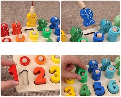 UKŁADANKA DREWNIANA MONTESSORI NAUKA LICZENIA KSZTAŁTY SORTER ŁOWIENIE RYB