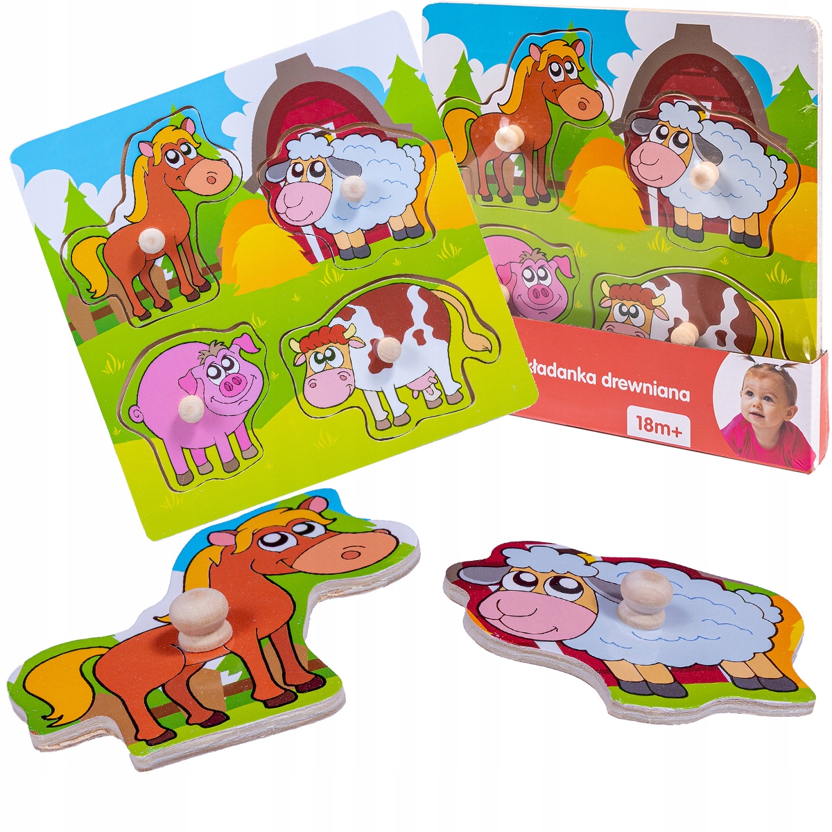 UKŁADANKA DREWNIANA Z UCHWYTAMI ZWIERZĘTA FARMA 2+