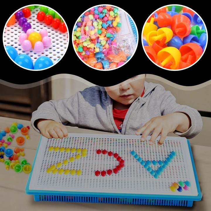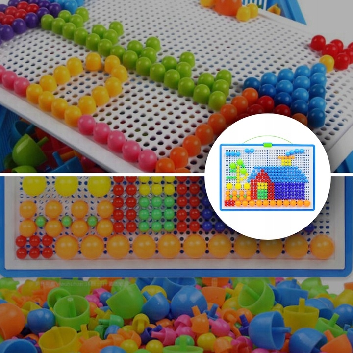 UKŁADANKA GUZIKOWA DLA DZIECI MOZAIKA EDUKACYJNA GRZYBKI PUZZLE TRENING
