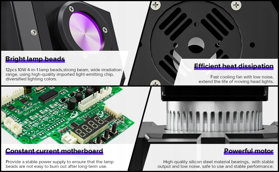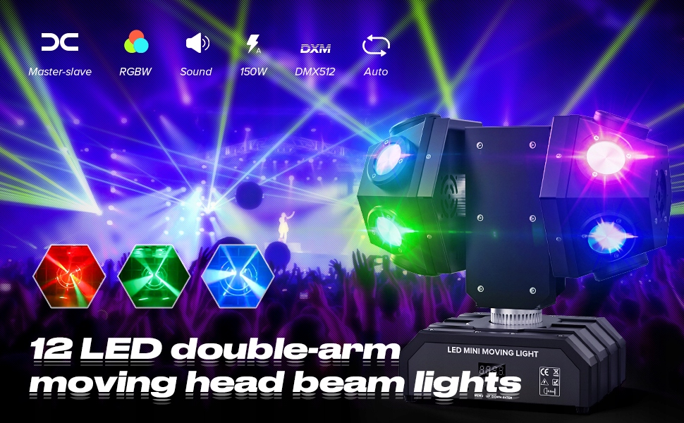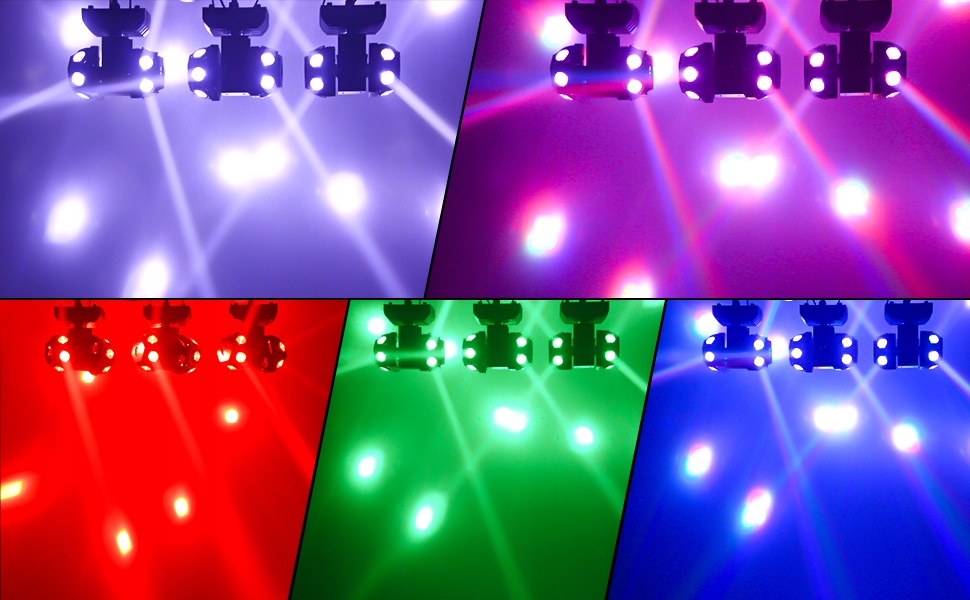 【Эффект освещения RGBW】 Этот светодиодный светильник для вечеринок имеет луч, стробоскоп, RGBW, смешивание цветов, затемнение, изменение цвета, регулировку скорости и другие эффекты. Широкий диапазон освещения, высокая насыщенность цвета, хорошее восприятие луча. Обе стороны движущейся головки можно вращать в противоположном направлении, эффект импульсной вспышки составляет 20 раз в секунду, луч чистый, насыщенность цвета высокая.