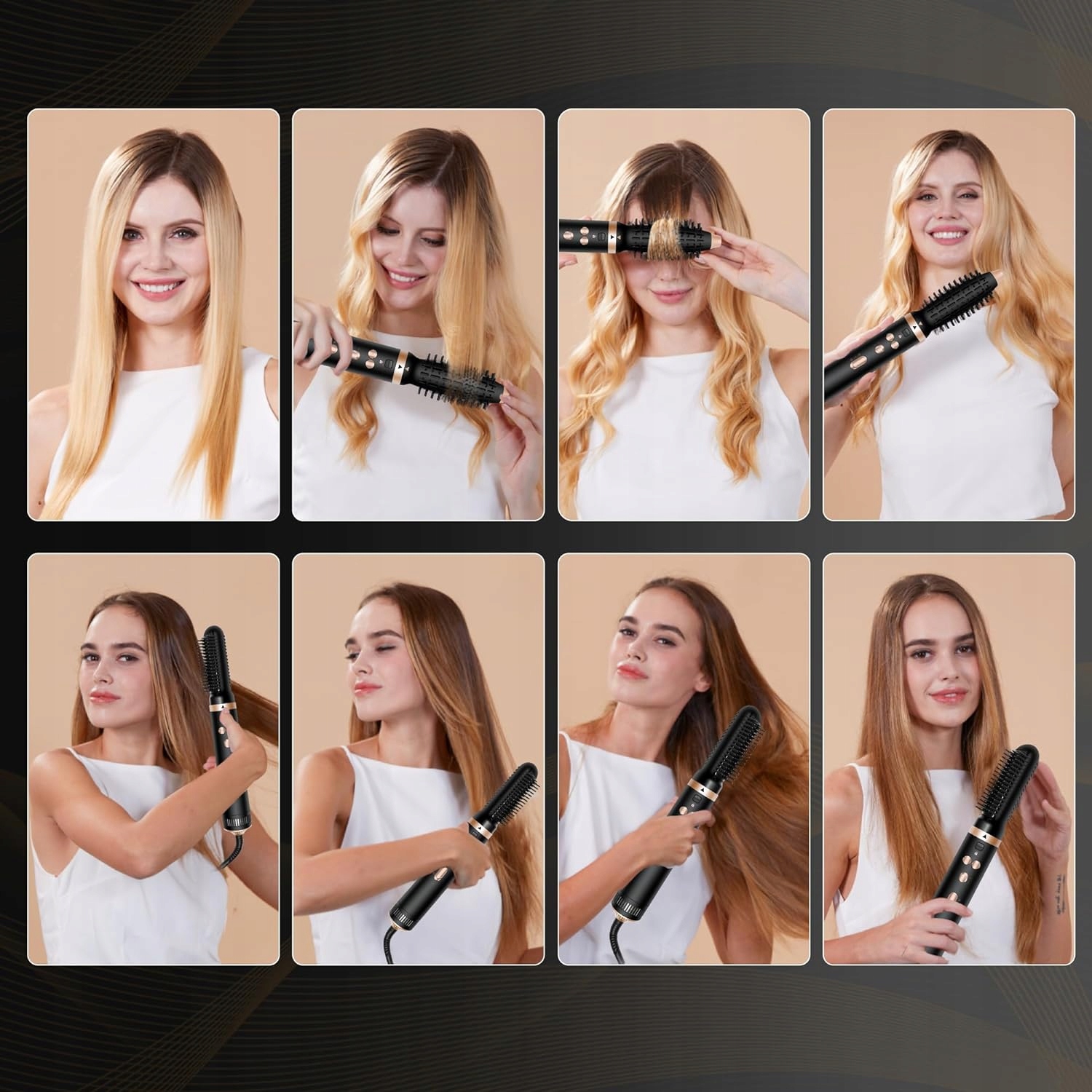 ✅Вращающаяся щетка с горячим воздухом быстро высыхает, разглаживает и притягивает волосы, уменьшает повреждение волос при нагревании и вдвое сокращает сезон укладки. Укладка горячим воздухом удовлетворит все ваши потребности в домашней укладке и поможет быстро создать модный образ.