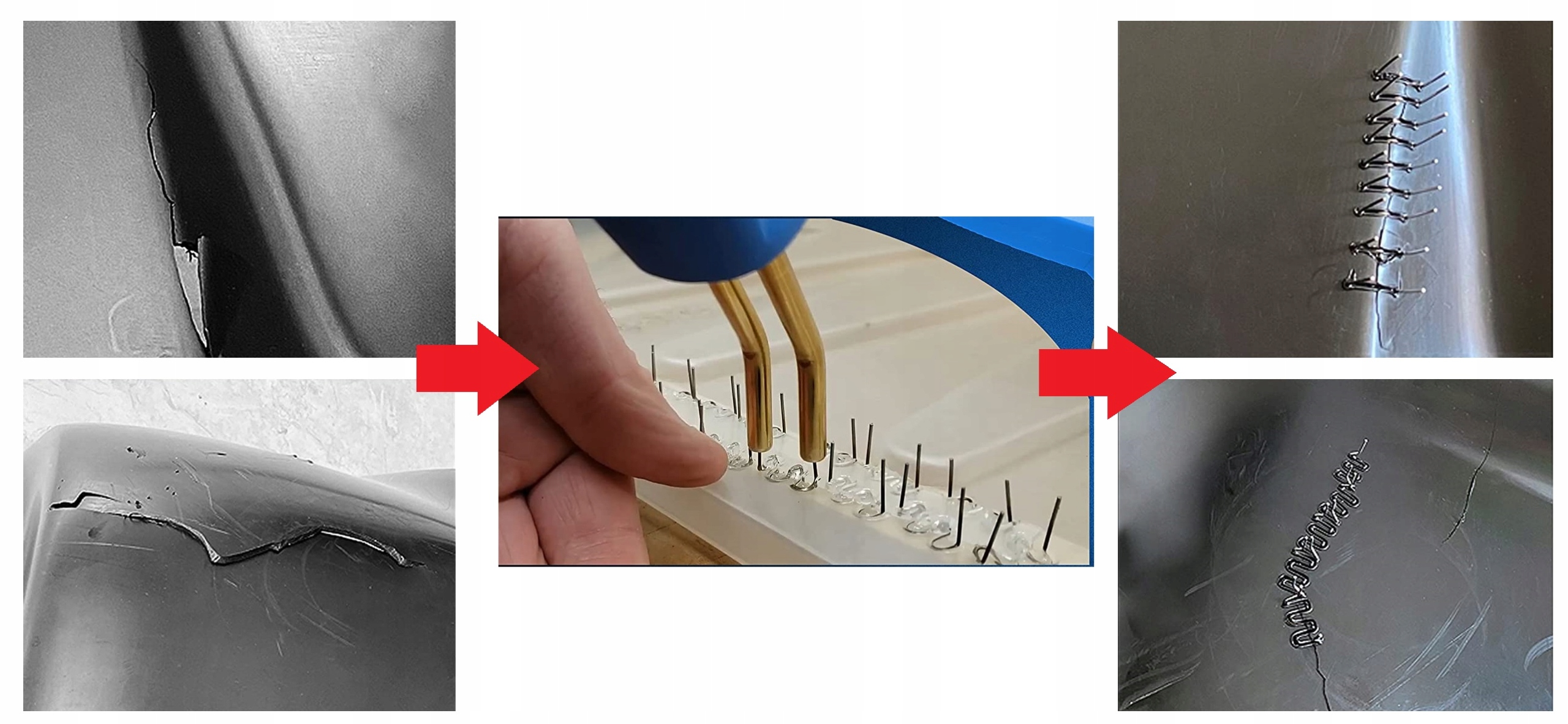 В комплект входят 200 скоб, с помощью которых устройство надежно соединит треснувшие пластиковые элементы, а место соединения будет устойчиво к ударам и скручиванию.