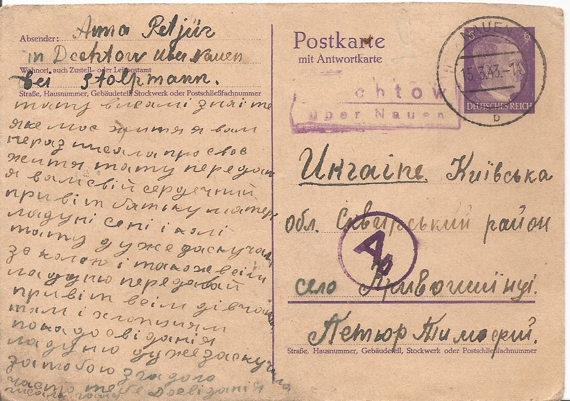 UKRAINA -TRZECIA RZESZA -postkarte -obieg 1943 rok -j.ukraiński