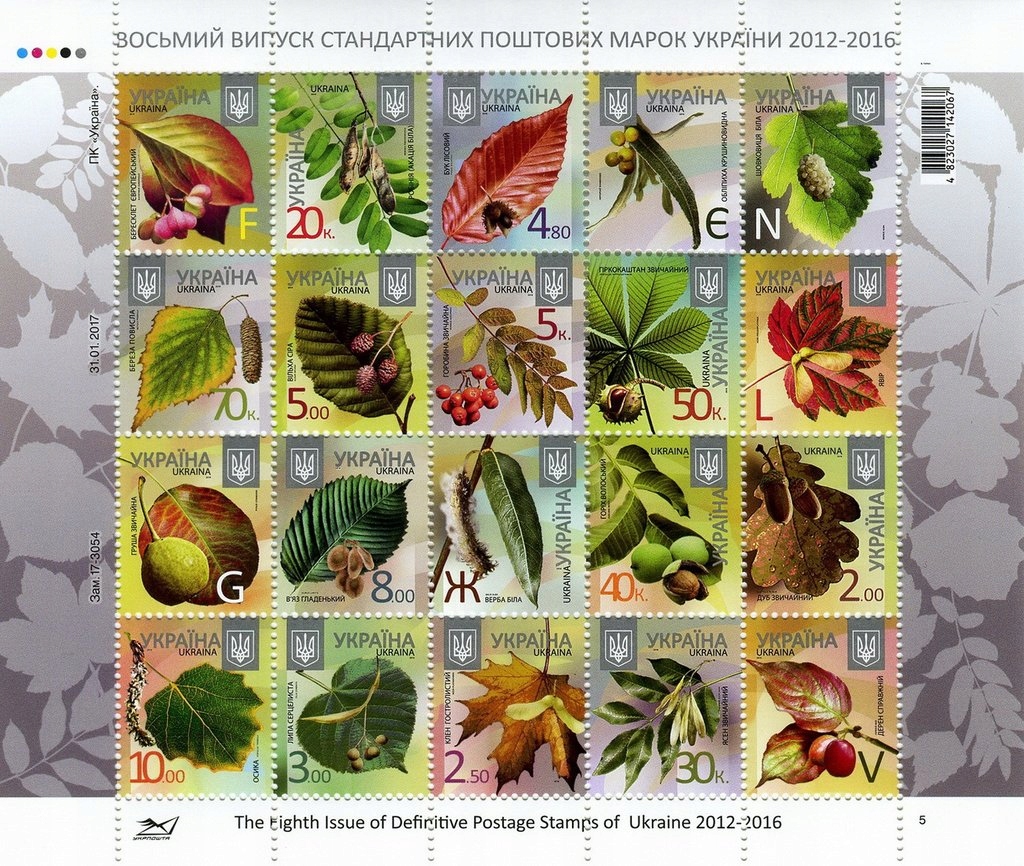 Ukraina 2017 Znaczki Ark 1521A ** obiegowe liście owoce drzew
