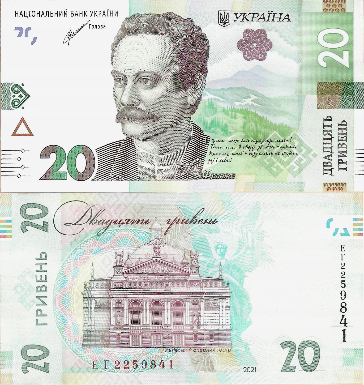 Ukraina 2021 - 20 Hryven Pick NEW UNC (Shevchenko)
