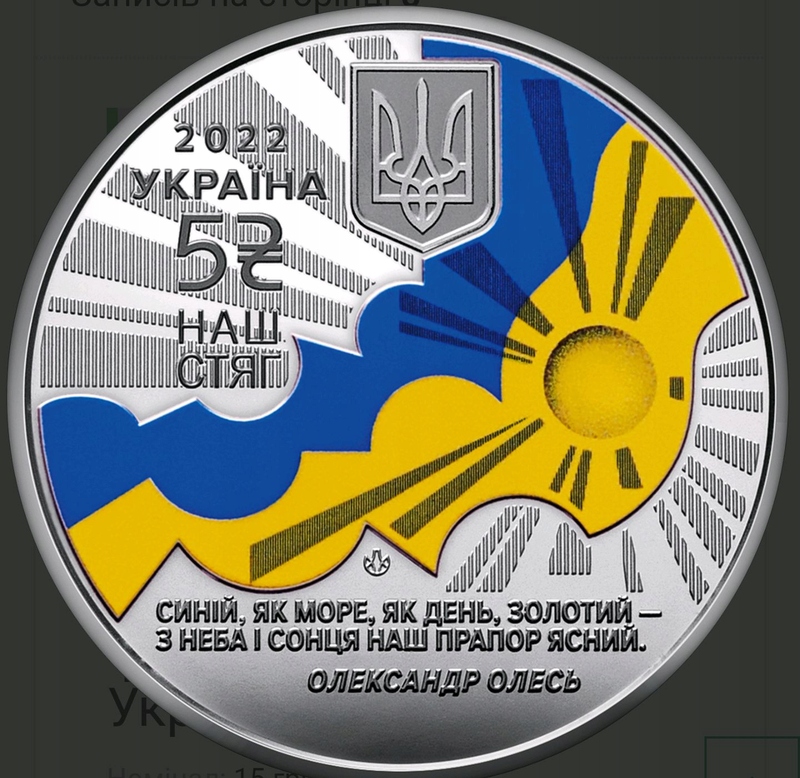 2)Украина 5 гривен, 2022 год