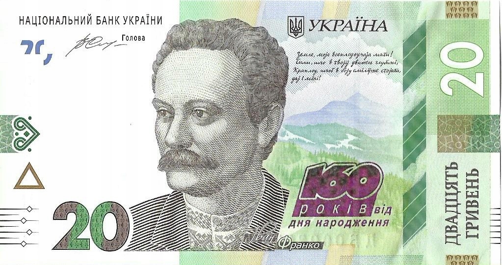 - Номинал: 20 ₴ - украинская гривна