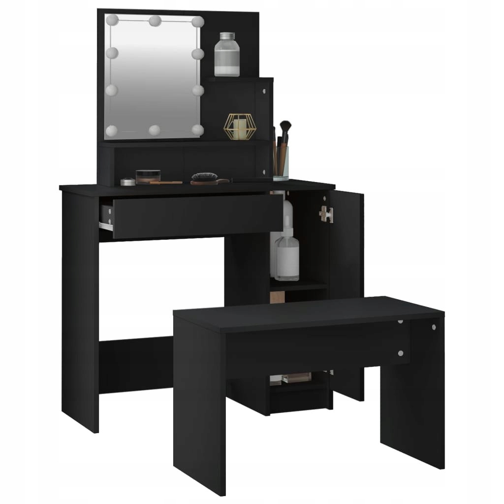 - Много места для хранения: косметический столик с табуреткой обеспечивают много места, обеспечивая легкий доступ к косметике, украшениям и предметам повседневного обихода. .