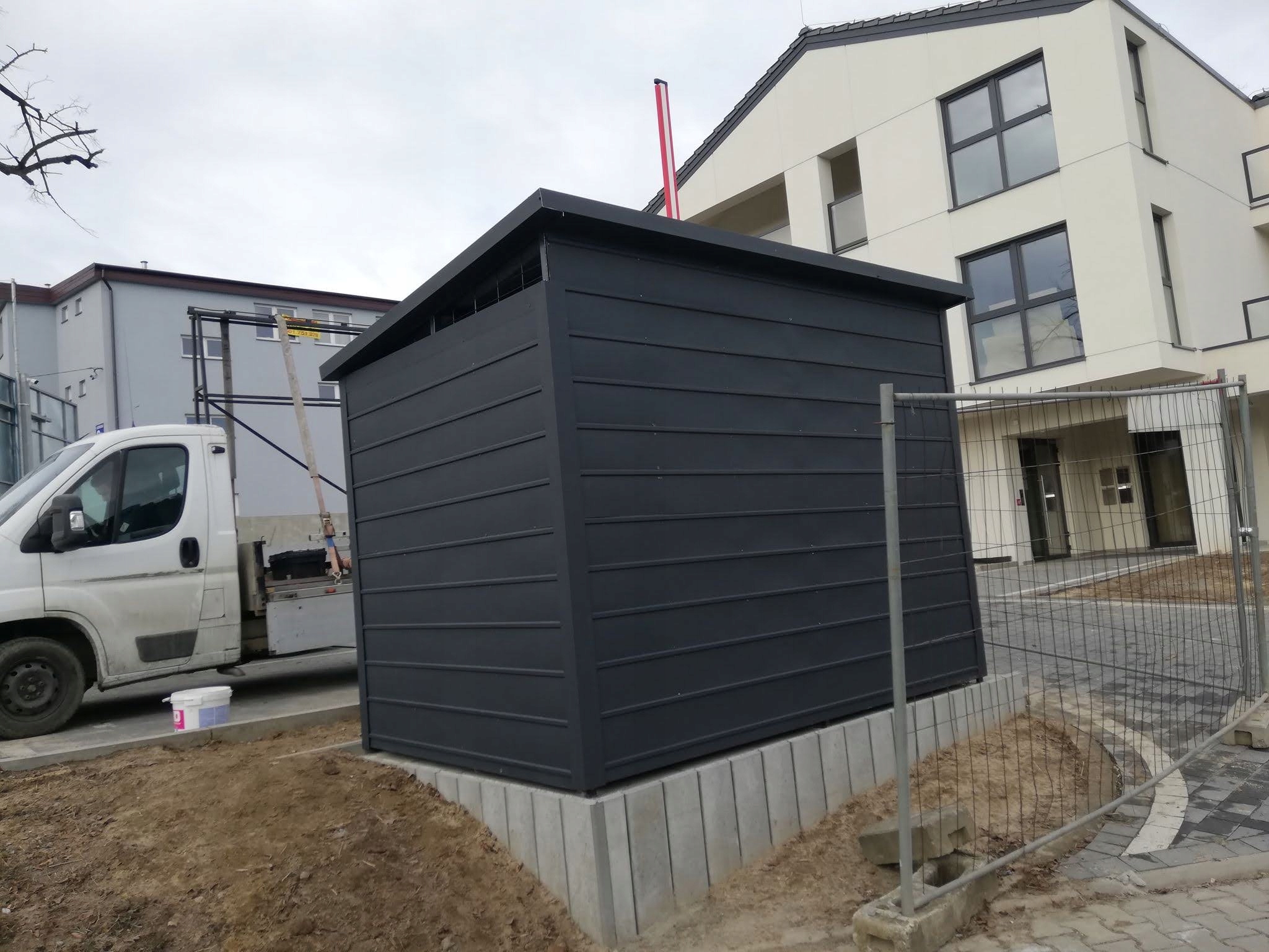Как производитель металлоконструкций мы предлагаем современный навес для мусора.