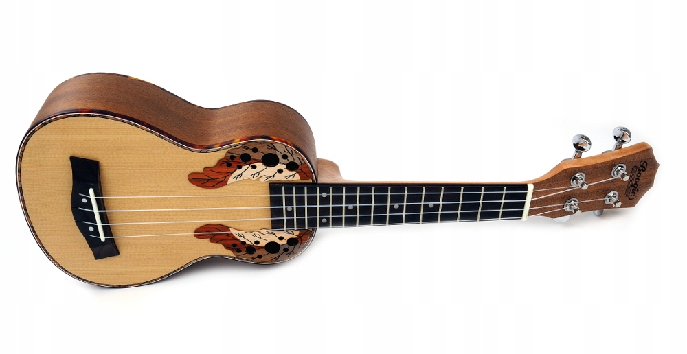 Boogie SP20 - деревянная гавайская гитара сопрано, изготовленная из выдержанной древесины высочайшего качества - ели, красного дерева и палисандра, с уникальным деревянным дизайном и красивым цветом верха. пластина из натуральной ели.