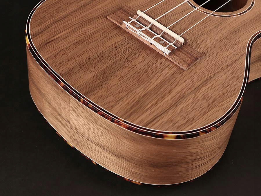 Деревянная концертная гавайская гитара из темного очень дорогого дерева DAO. Идеально подогнанные элементы и масляные клавиши, янтарная окантовка вокруг звуковой коробки и прекрасный звук!