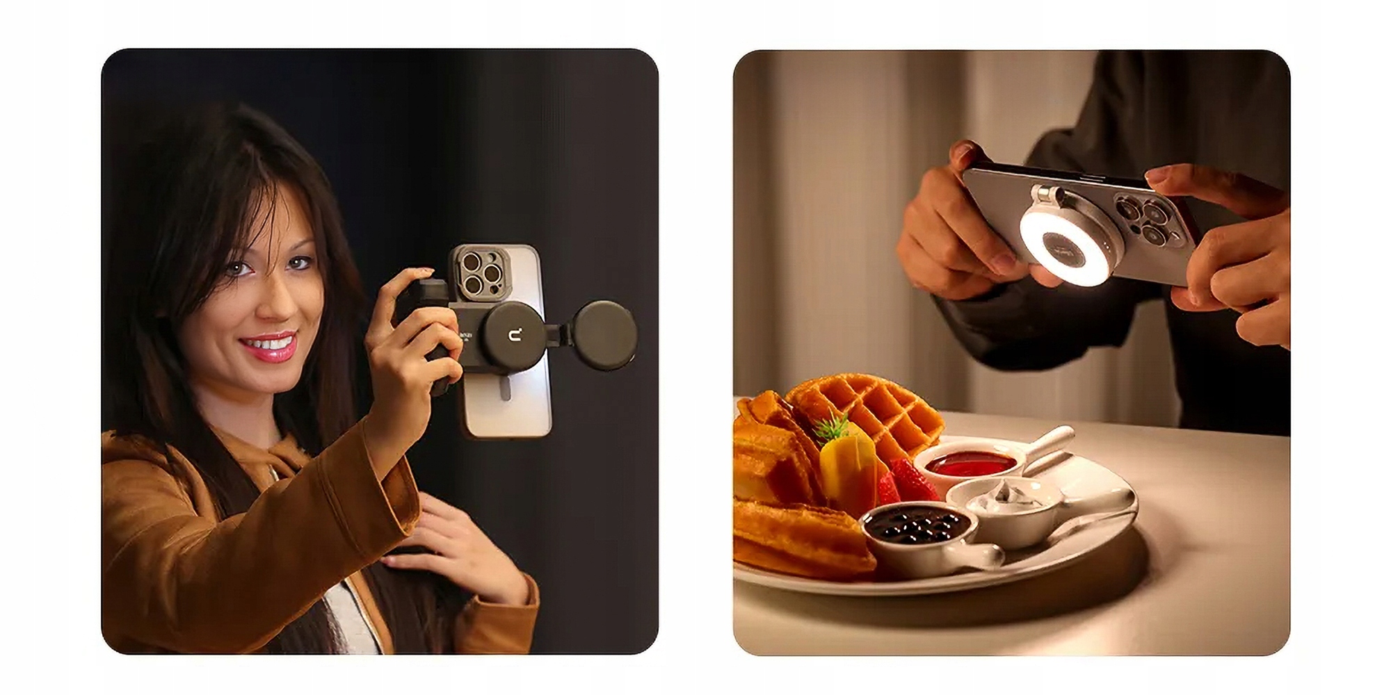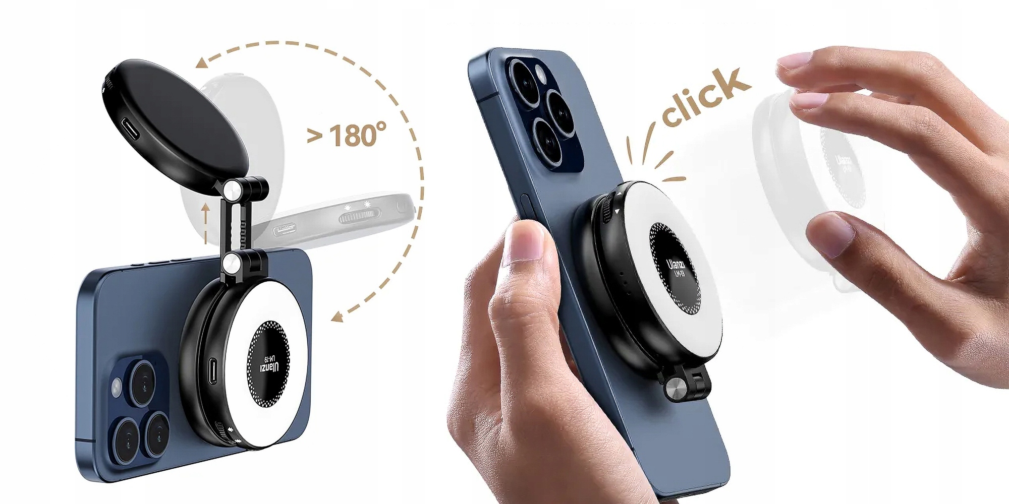 Светодиодная лампа LM19 Magsafe-это удивительный инструмент для каждой фотографии в фильме «Согласно в сфере в сфере в сфере в сфере в сфере соседа». Благодаря совместимости со стандартом MAGSAFE устройство может быть легко прикреплено к iPhone (от модели 12 UP), обеспечивая стабильность и удобство использования. Магнит позволяет быстро и надежно прикрепить лампу к другим поверхностям - просто используйте клейкое кольцо, прикрепленное к набору.