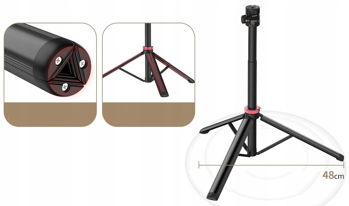 - Lighting Lighting штатив Ulanzi очень легкий и удобен во время путешествия. Большое преимущество - небольшая высота штатива, которая после складывания составляет всего 36,5 см