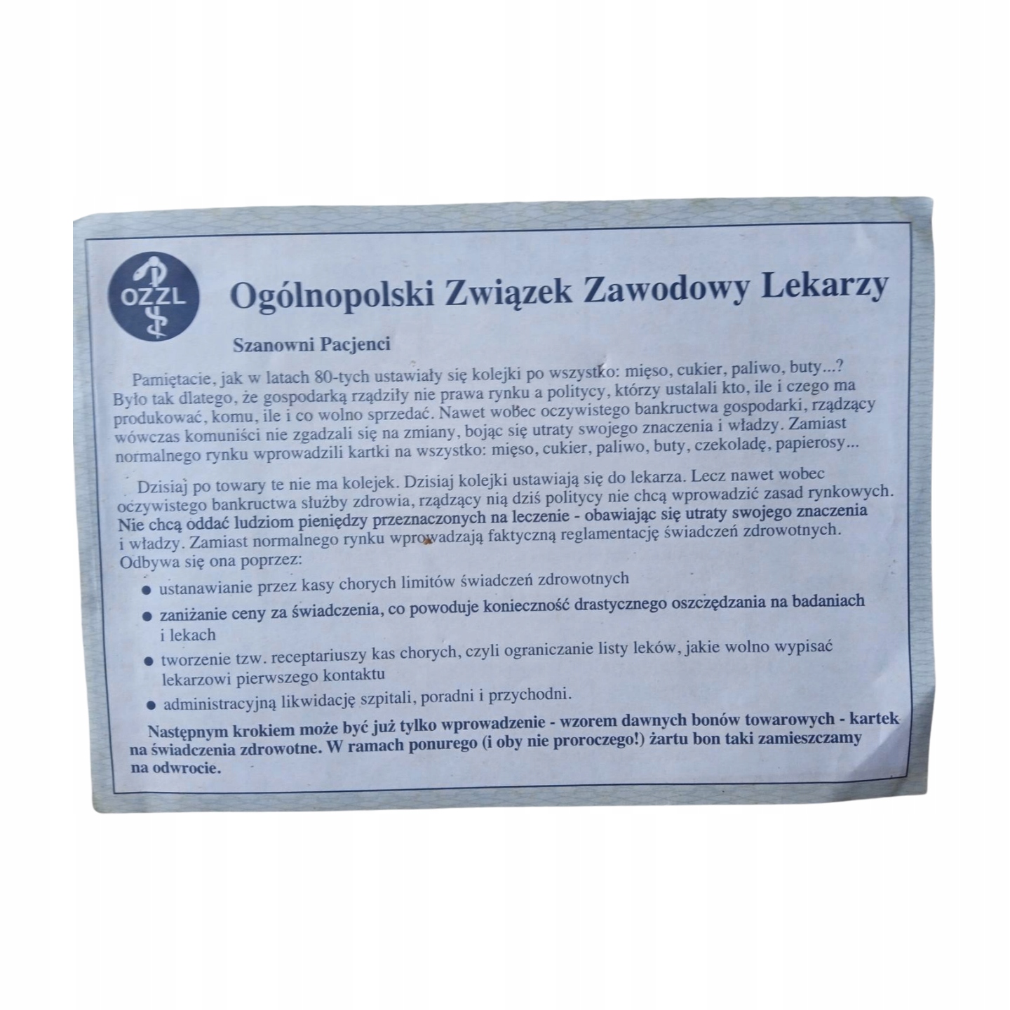 Ulotka strajku OZZL z roku 2001.