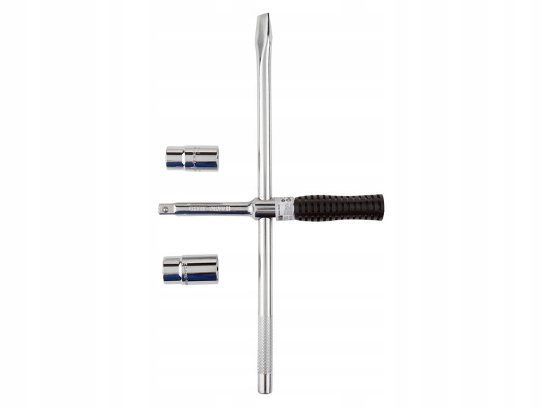 Гаечный ключ также оснащен монтажным рычагом, который идеально подходит для снятия колпаков колес. В сложенном виде он занимает мало места, а практичная сумка облегчает его хранение. В комплект также входят 2 торцевых ключа размером 17/19 мм и 21/23 мм. Благодаря нашему колесному ключу замена шин пройдет быстро, удобно и без проблем.