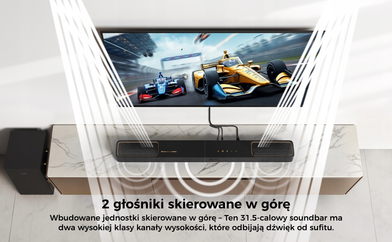 Серия Skywave — это совершенно новая линейка продуктов Ultimea, представленная на рынке в 2025 году. Эта серия выделяется тем, что каждая модель оснащена контроллерами Skywave. Синергия драйверов Skywave и звука Dolby Atmos поднимает качество звука на беспрецедентную высоту. Кроме того, серия Skywave включает в себя технологию Gravus Super-Linear Bass. Это обеспечивает чистое и мощное звучание без искажений даже на большой громкости благодаря сверхлинейному смещению. Кроме того, мы улучшили внешний вид с помощью элегантной черно-золотой цветовой гаммы, что повысило общий премиальный вид саундбара.