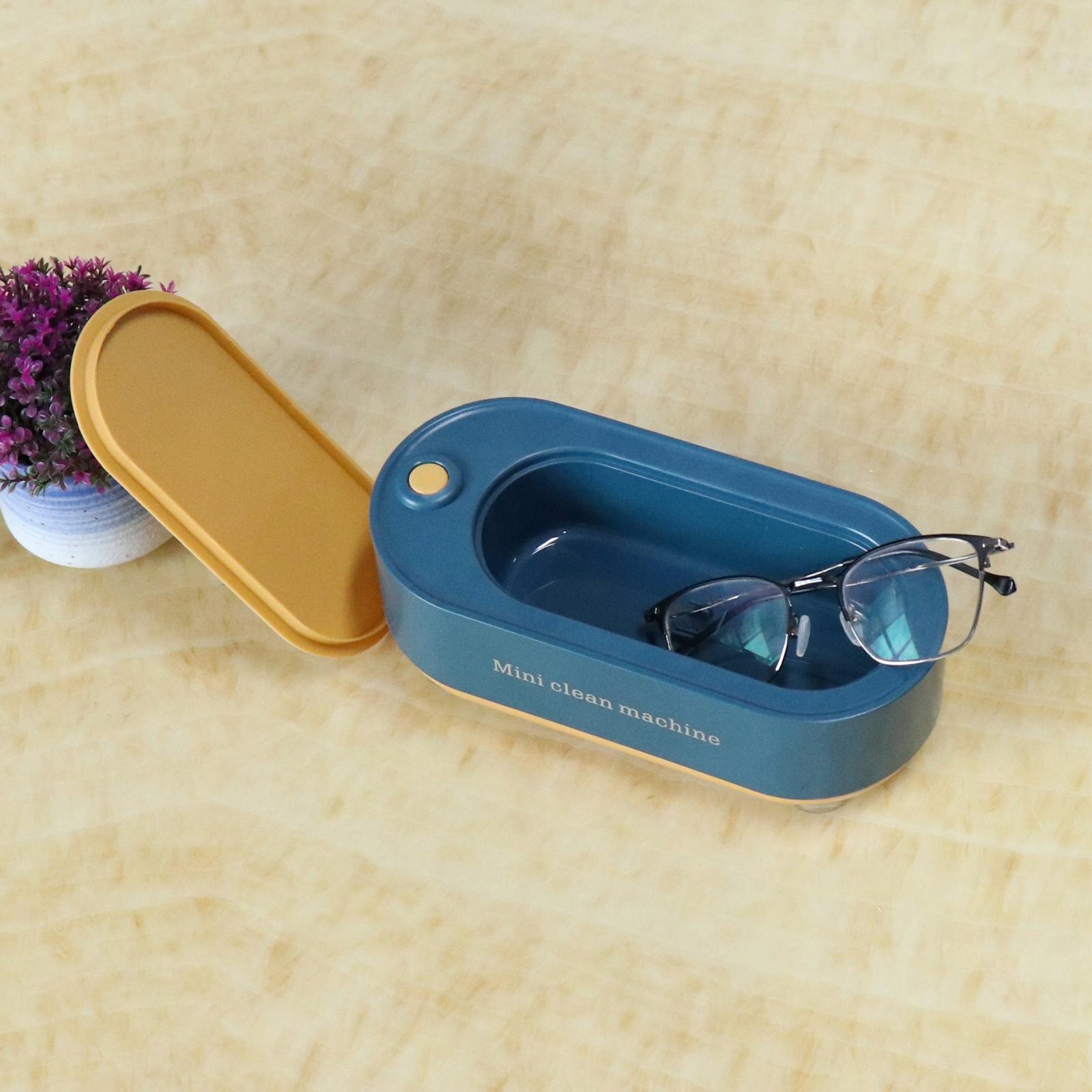Профессиональный портативный ультразвуковой очиститель для бритвенных головок, очков, зубных протезов, блок питания, синий