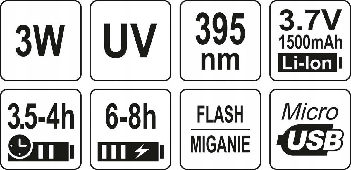 Аккумулятор UV, предназначенный для диагностики систем кондиционирования автомобиля с контрастным агентом. Также используется при поиске янтаря и других минералов, которые реагируют на ультрафиолетовый свет, чтение надписей, сделанных с помощью ультрафиолетовой краски, обнаружение пятен мочи после животных и тестирования банкнот.