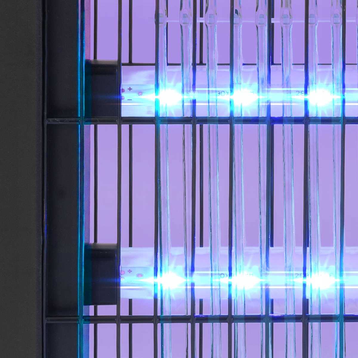 Его конструкция и используемый ультрафиолетовый свет А означают, что насекомые притягиваются к ловушке с разных сторон. Когда летающие насекомые приближаются к устройству и касаются внутренней сетки, они подвергаются воздействию электрического тока и погибают.