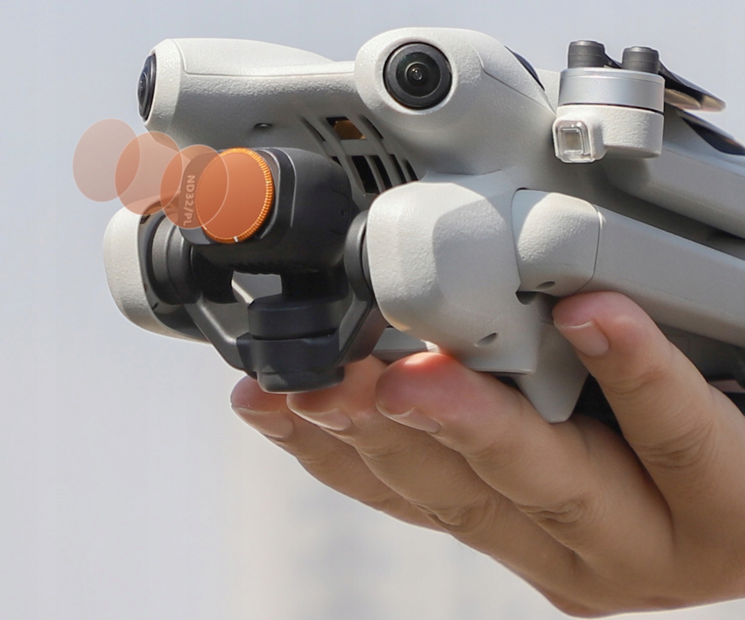 Фильтр прикреплен таким образом, что он может быть установлен на беспилотнике все время. Нет проблем с тем, чтобы надеть дополнительные аксессуары, такие как защитный или солнцезащитный крем