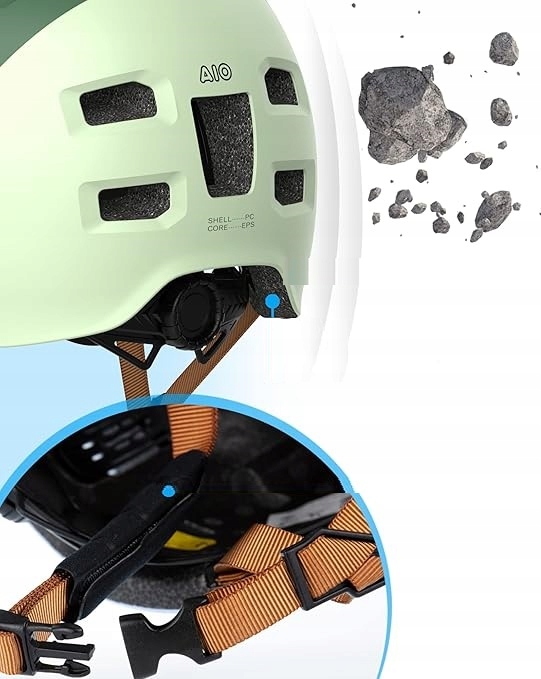 - Уникальная пряжка: регулируемый ремень шлема с застежкой уникального дизайна позволяет регулировать длину в любой момент и в то же время предотвращает соскальзывание пряжки.