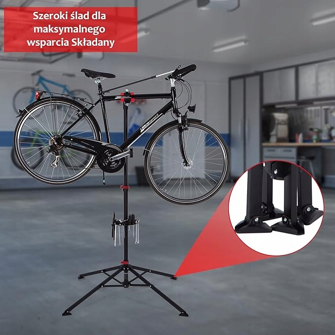 Четырехногие ножки подставки обеспечивают устойчивость при ремонте велосипедов, а также подходят для привинчивания к полу