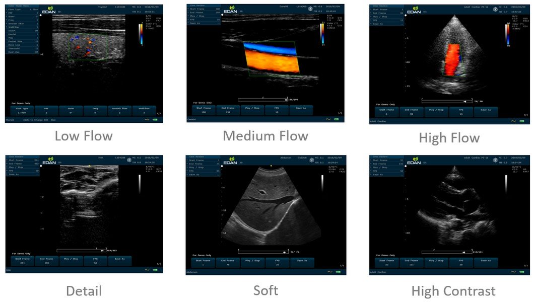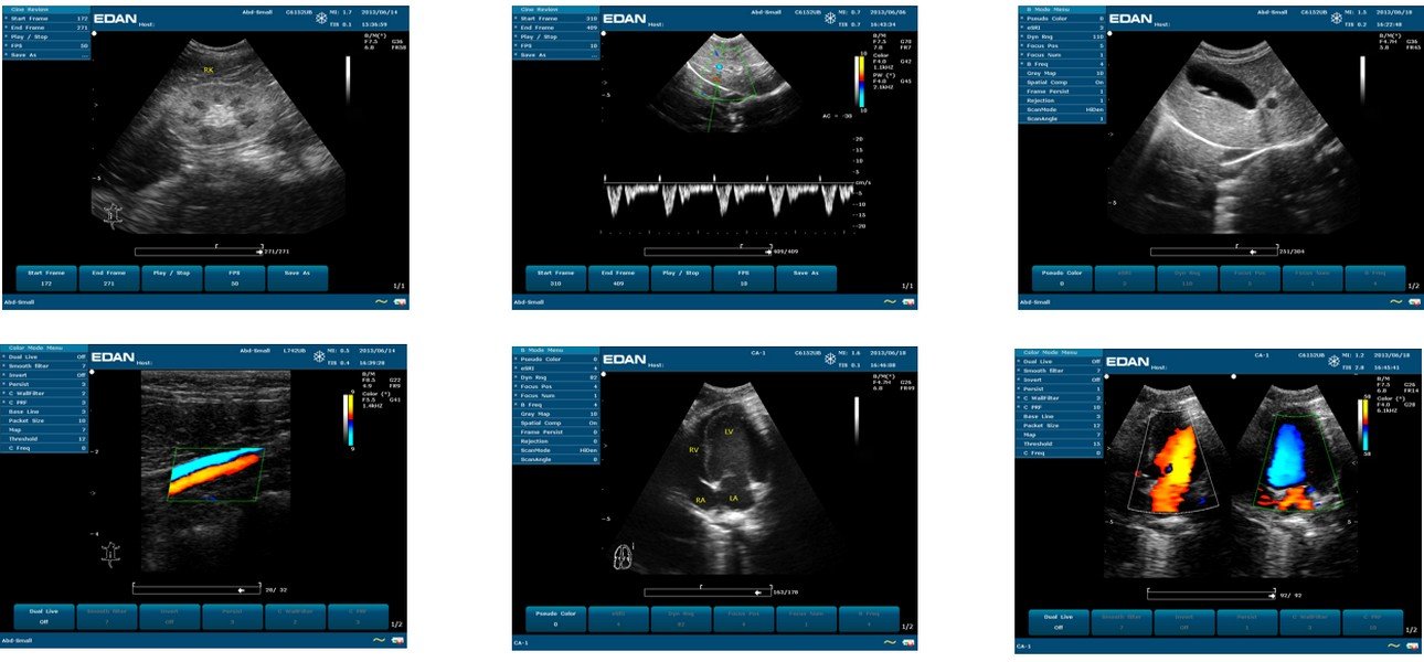 - Допплеровская визуализация: Цветной, энергетический/направленный энергетический допплер, спектральный импульсно-волновой и непрерывный допплер, HPRF, допплеровское изображение в дуплексном и триплексном режиме.