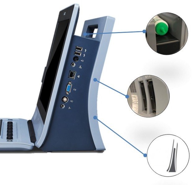 - Записи исследований: внутренний жесткий диск, флэш-накопитель (файлы .jpg, .bmp, .pdf, .avi), видеопринтер.