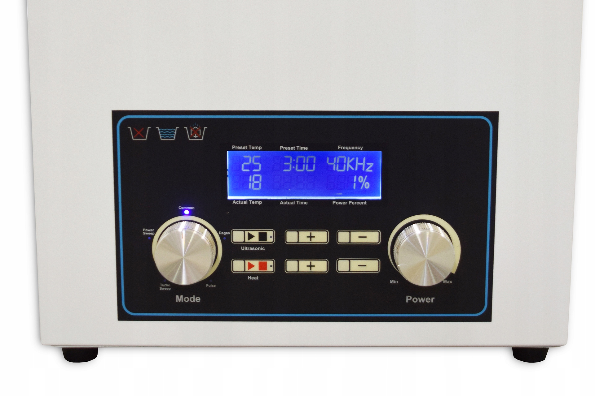 Когда этот режим активирован, ультразвуковые генераторы работают с перерывами. Это позволит удалить из жидкости воздух, в том числе углекислый газ. Благодаря этому образуется больше кавитационных пузырьков, что увеличивает эффективность очистки на более 30%.