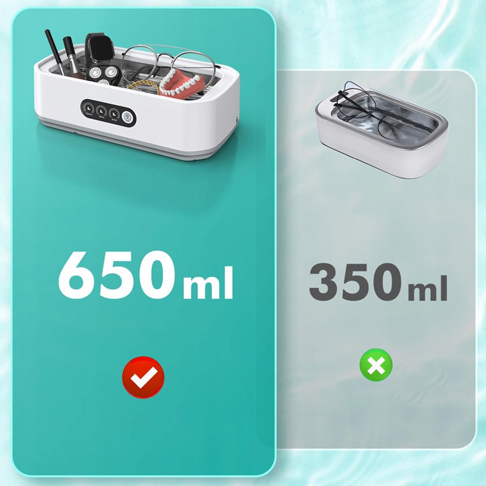 💦 Spection Очистка 360 °: Ультразвуковое устройство имеет емкость до 650 мл для удовлетворения ежедневных потребностей очистки. Очки, зубные протезы, машины для бритья, ювелирные изделия и т. Д. Могут быть полностью влажными, чтобы тщательно чистить