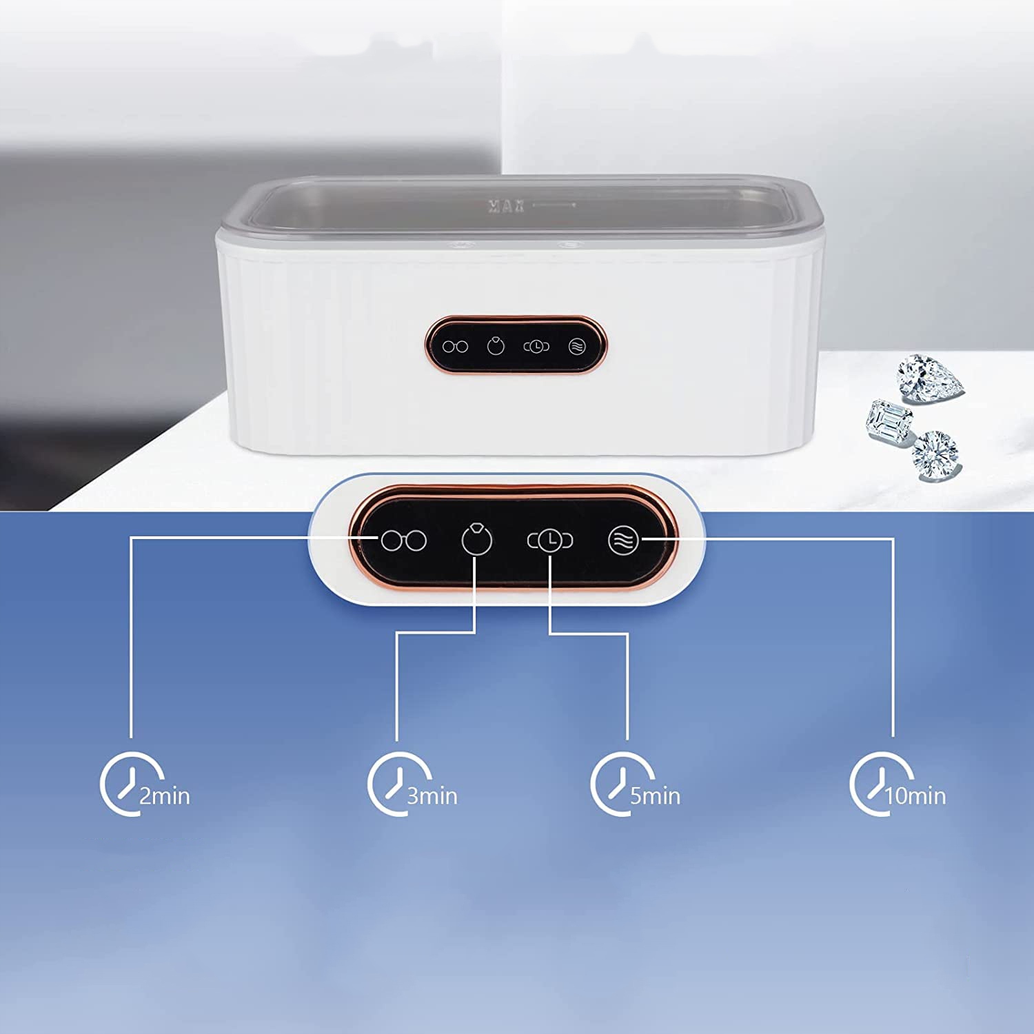 ✅ напротив одной кнопки: ультразвуковой поднос очень прост в использовании. Просто налейте воду в устройство. Затем введите в него чистящие элементы. Наконец, одного щелчка достаточно, чтобы выбрать желаемое снаряжение и дождаться окончания очистки
