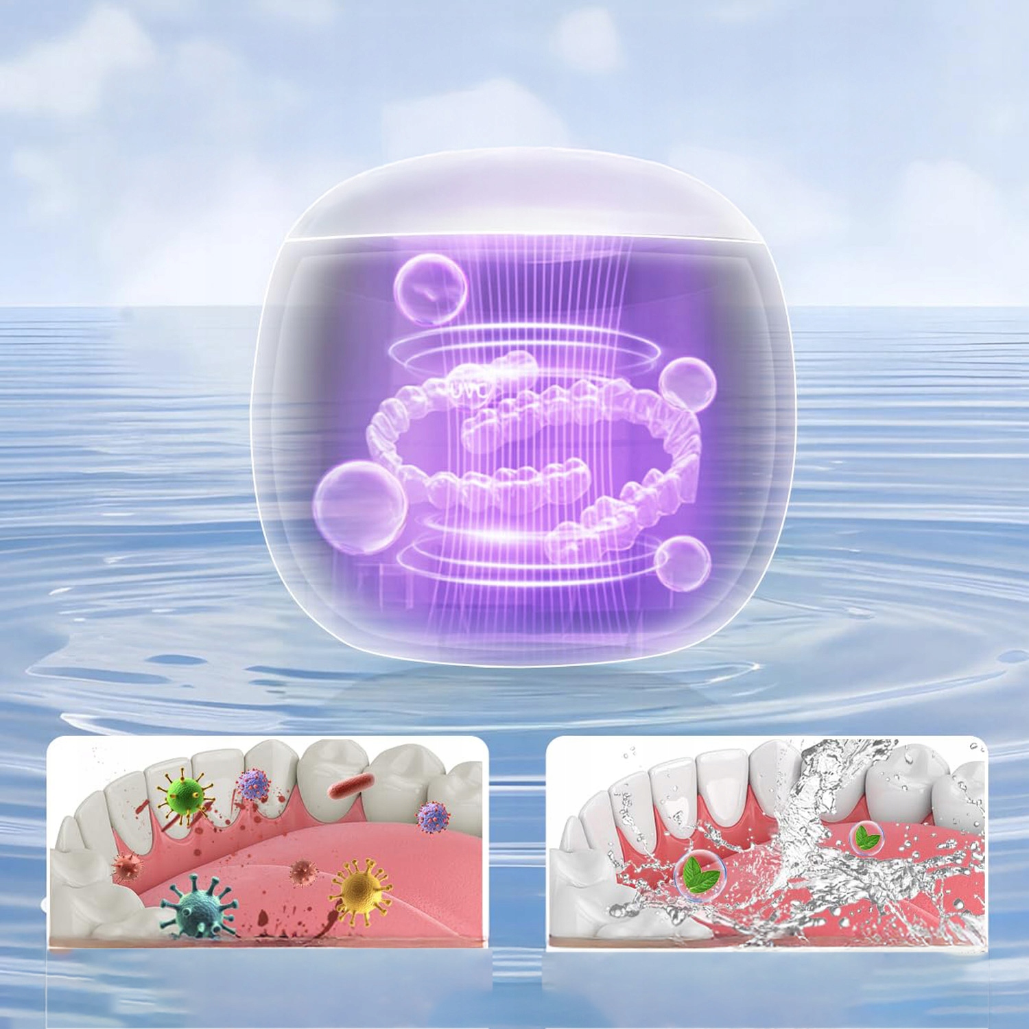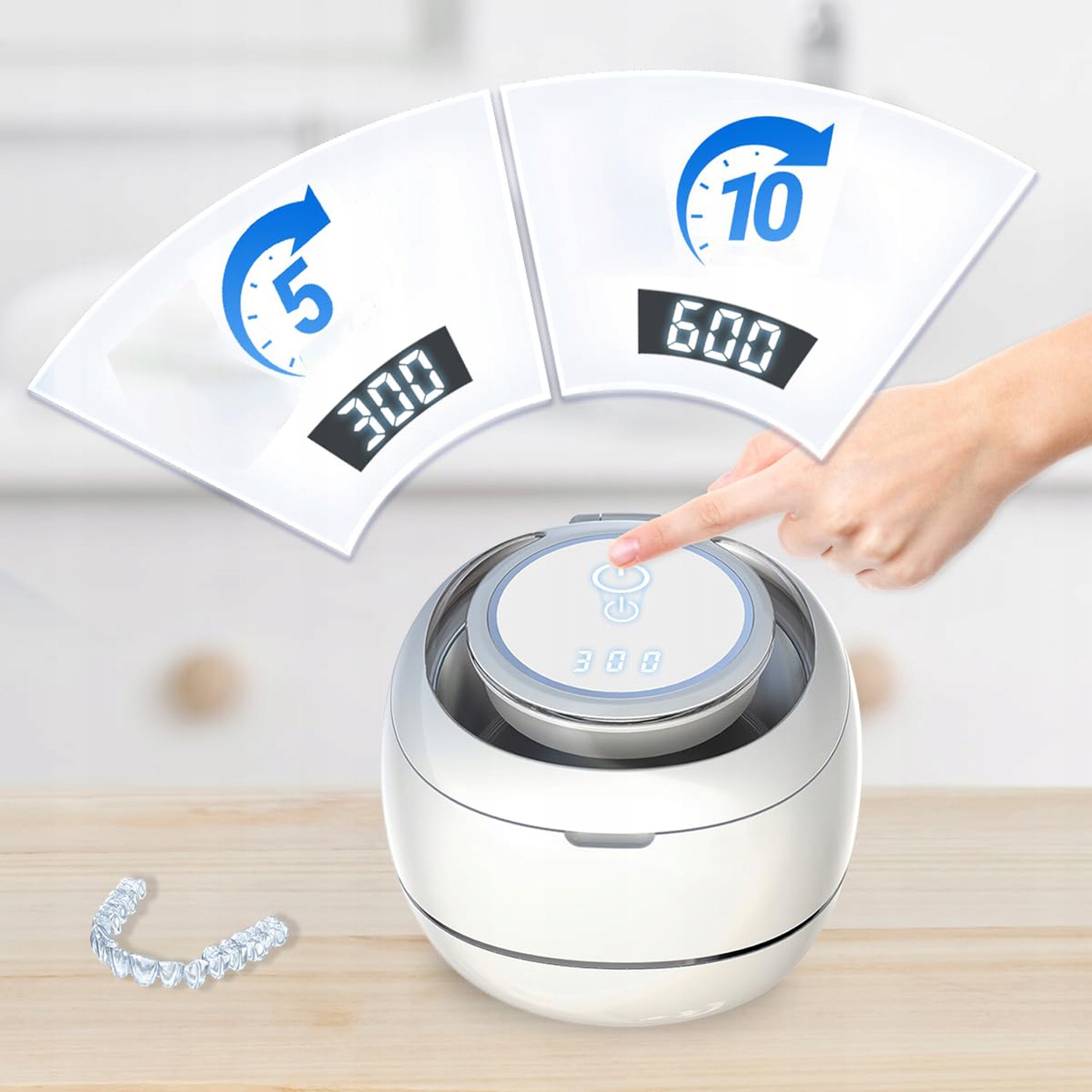 Устали чистить зубные протезы? Наше устройство ультразвуковой очистки легко решит эту проблему. Благодаря высокочастотной ультразвуковой технологии 40 ± 3 кГц он легко достигает каждого уголка и щели и обеспечивает комплексную, глубокую очистку на 360°, не повреждая предметы. Благодаря U-образным прозрачным окнам процесс уборки виден с первого взгляда. Удаляет грязь с зубных протезов, фиксаторов, насадок зубных щеток и даже ювелирных изделий. Добавьте моющее средство в резервуар для воды, чтобы улучшить эффект очистки.